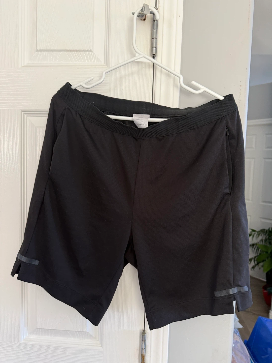 Selling a pair of Adidas black shorts in size L. They're in great shape and ready for a new home! Perfect for workouts or just lounging around the house. Feel free to message me with any questions!