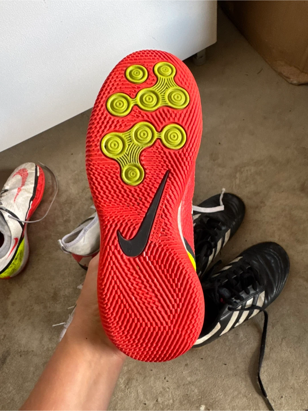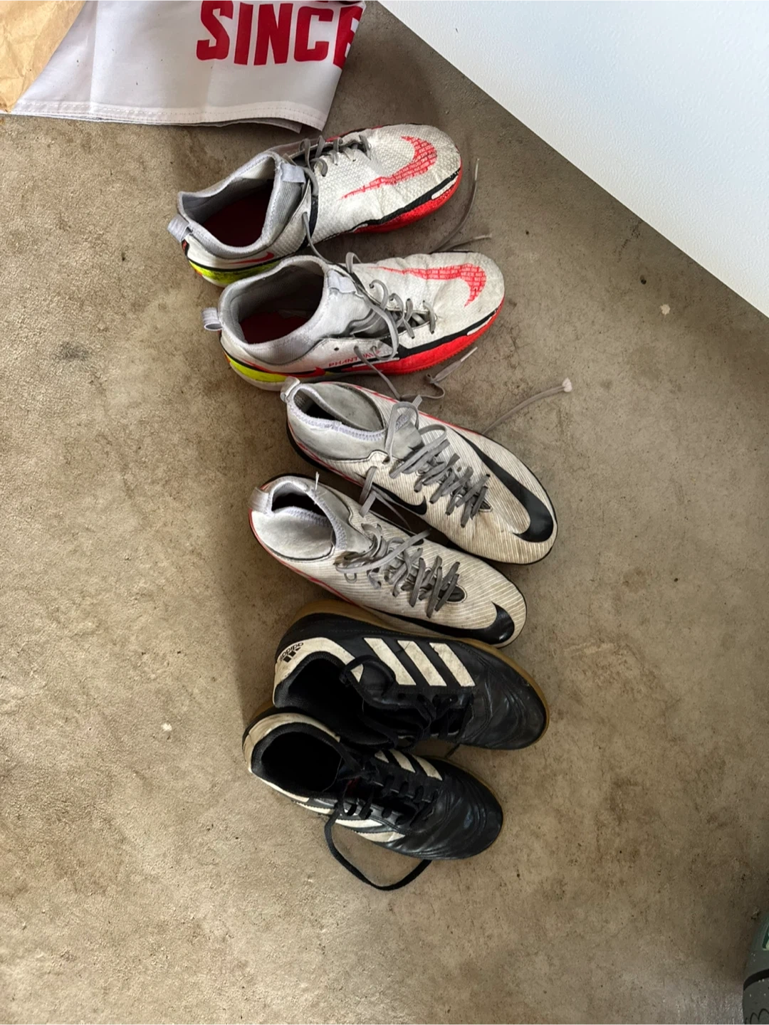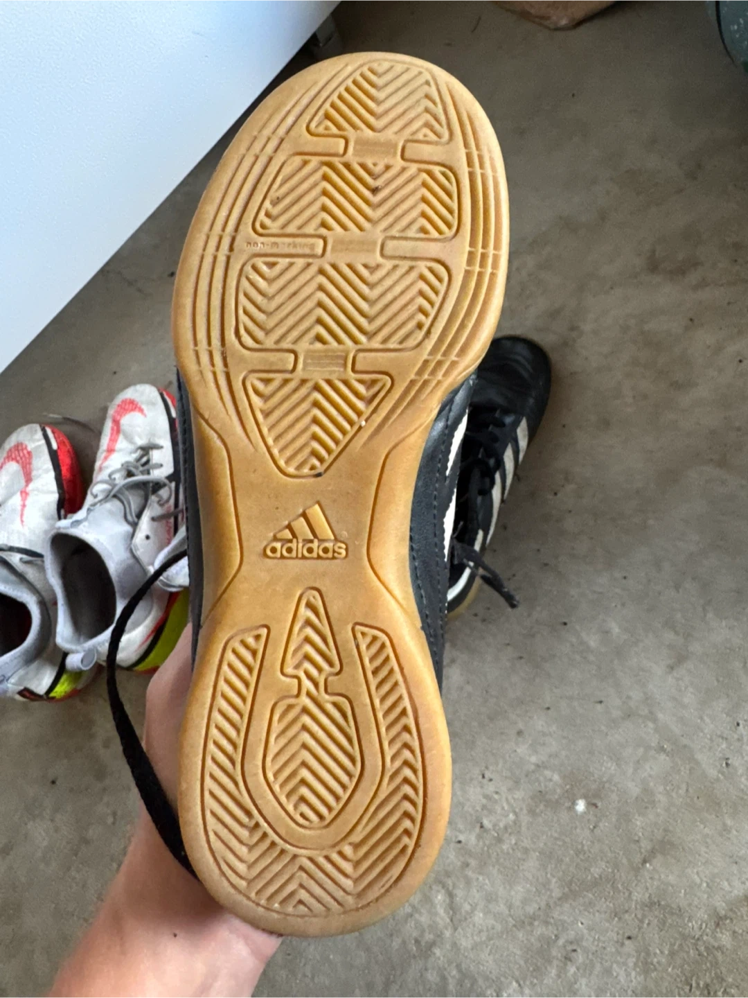 Free three pairs of Adidas indoor soccer. They're in good condition and ready for your next game! All around a size 4
