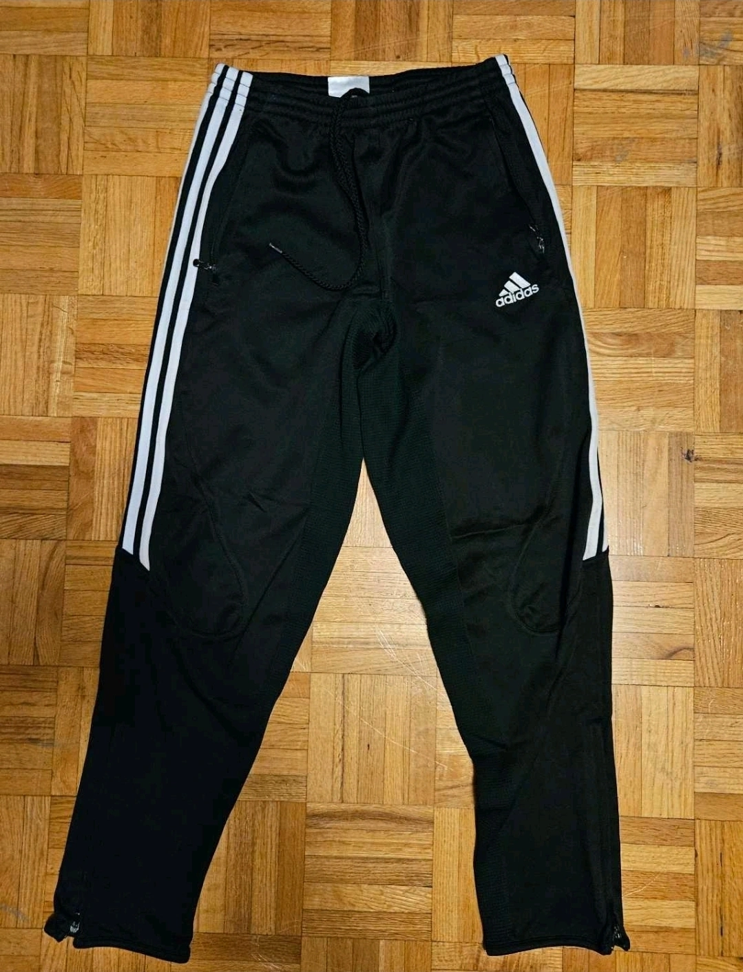 Adidas youths M track pants in black with the classic white stripes down the sides. These are great for sports or just lounging around. They have a drawstring waist and zip-up ankles Pick up in Whitby.. jeffery/dundas.. evening pick up .. no porch pick up