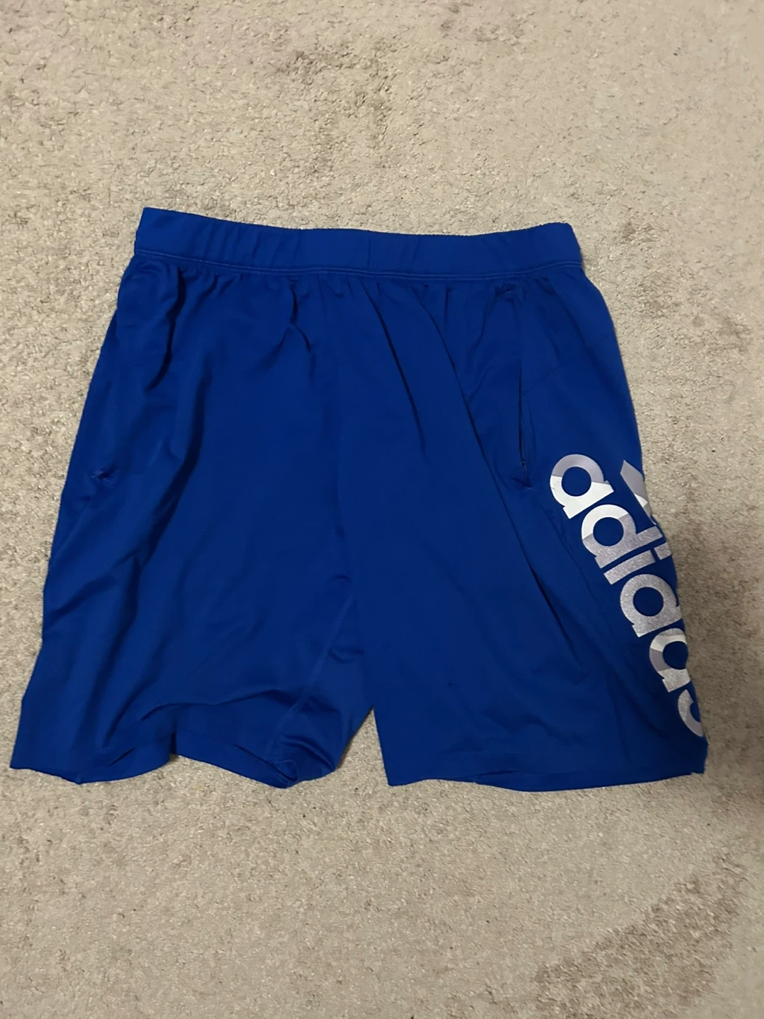 Here are some blue Adidas athletic shorts! They are in great condition and ready for a new home. Perfect for running, sports, or just lounging around