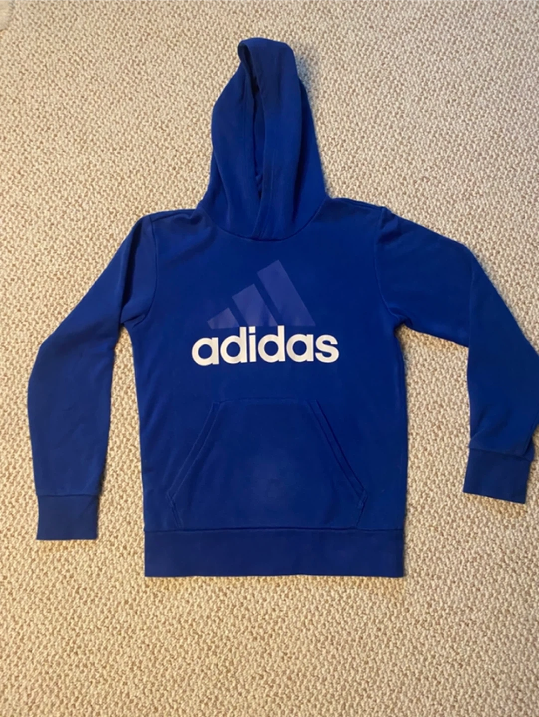 Selling a blue Adidas hoodie. Perfect for staying cozy on cooler days. The Adidas logo is prominently displayed on the front. Size medium, size tag removed. No cuts, slits. Small hard to see mark on front of pouch of hoodie. Wash and cleaned. Cash and pick up only, Cawthra and Lakeshore area in Mississauga.