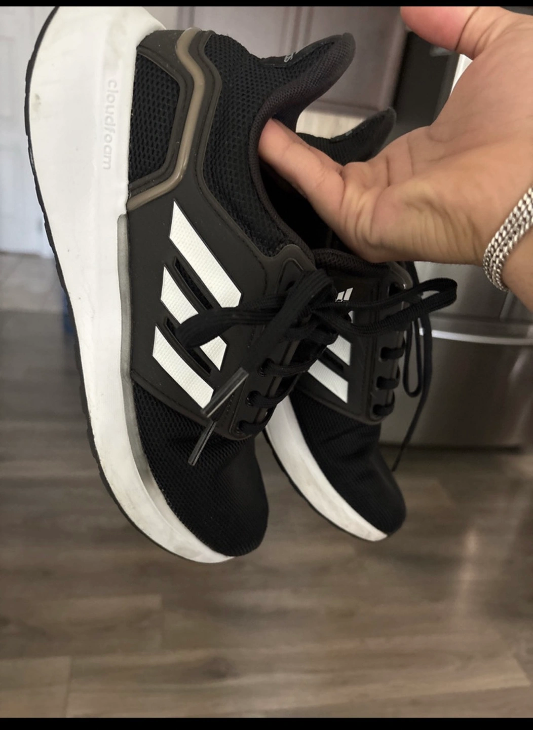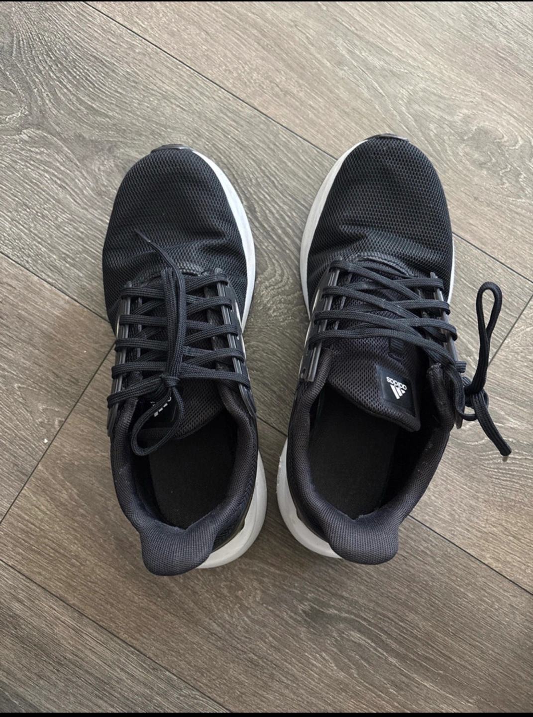 Selling a pair of Adidas Cloudfoam running shoes in US size 7. They're black with white stripes and have a comfortable cloudfoam sole. Great for running or everyday wear!