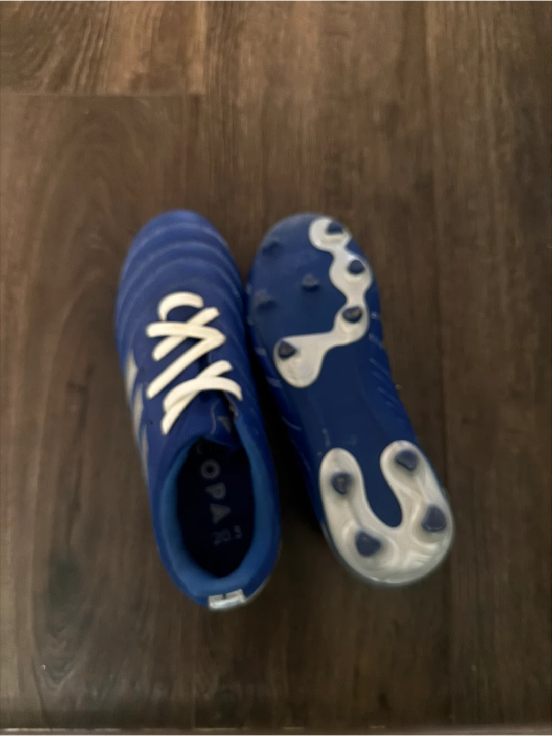 Selling a pair of Adidas Copa soccer cleats in blue! They are size US5. Great for young soccer players!
