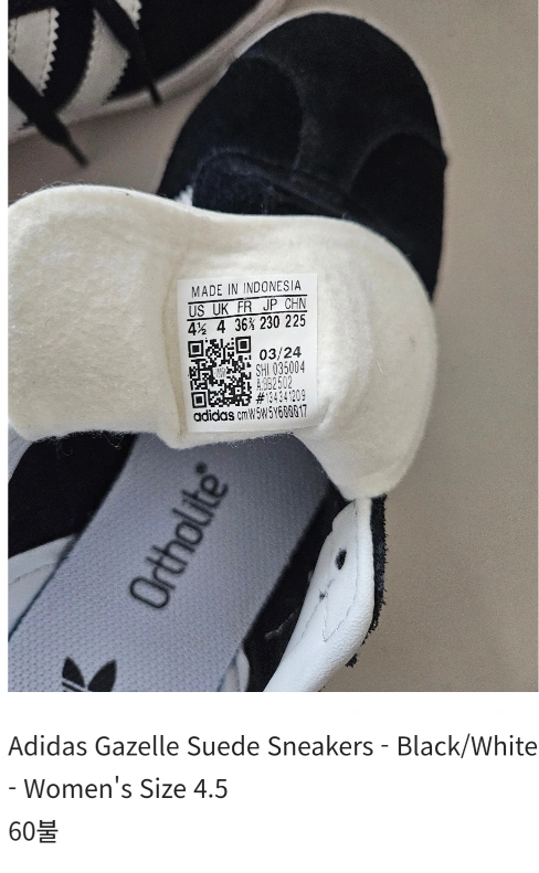 Adidas Gazelle Suede Sneakers - Black/White - Women's Size 4.5
