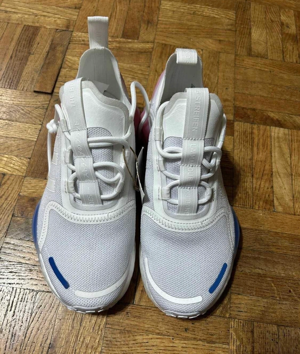 Pick up only White, blue, and red Adidas NMD_R1 STLT sneakers. Price is firm