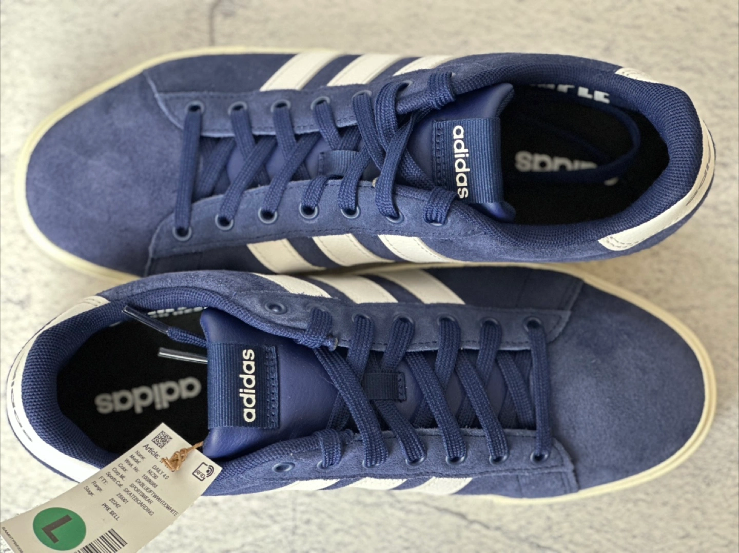 Men Size 9 US, These Adidas Grand Court Base sneakers are brand new and ready for a new home! They're a stylish navy blue with the classic Adidas white stripes. Perfect for everyday wear!