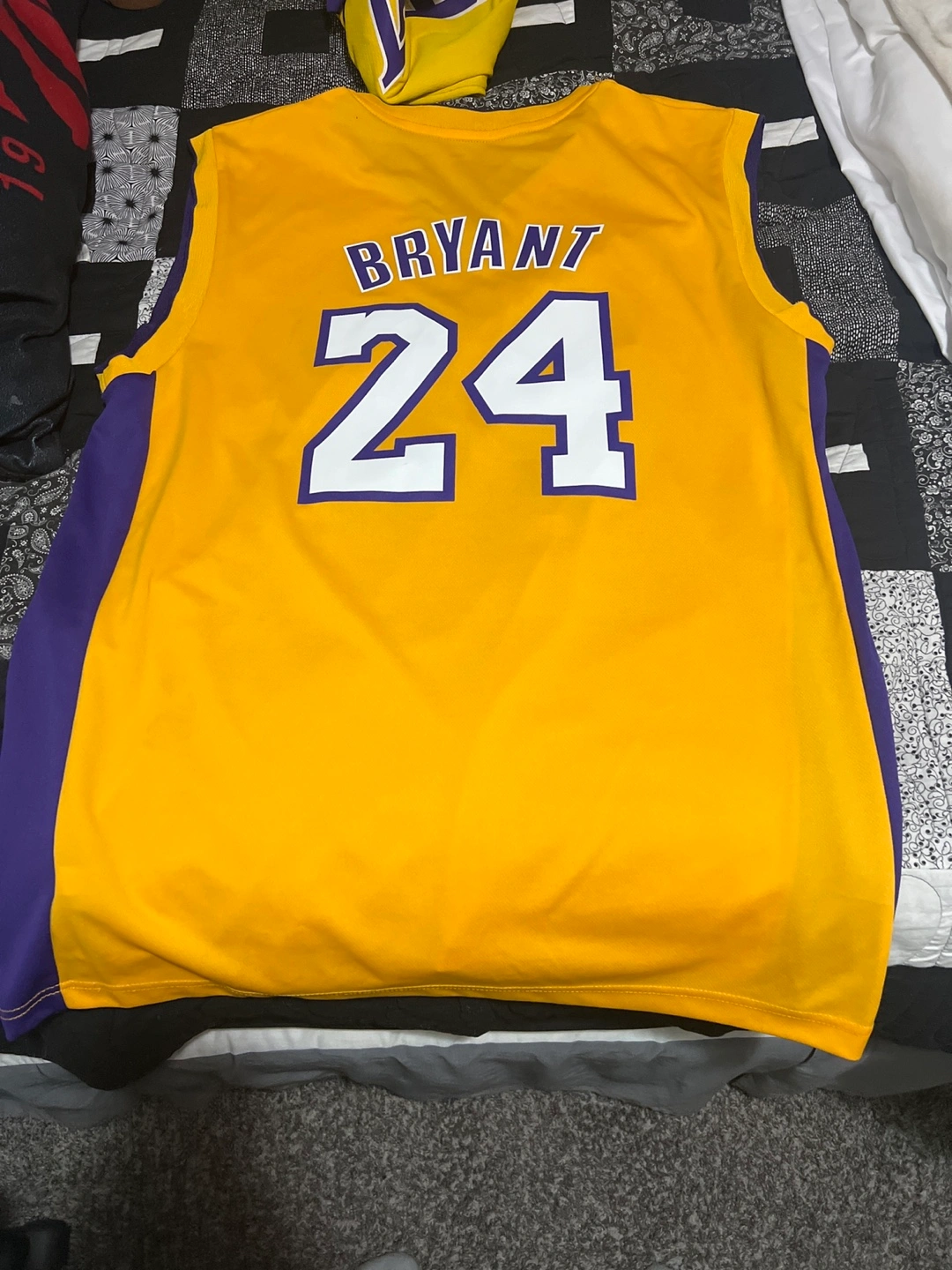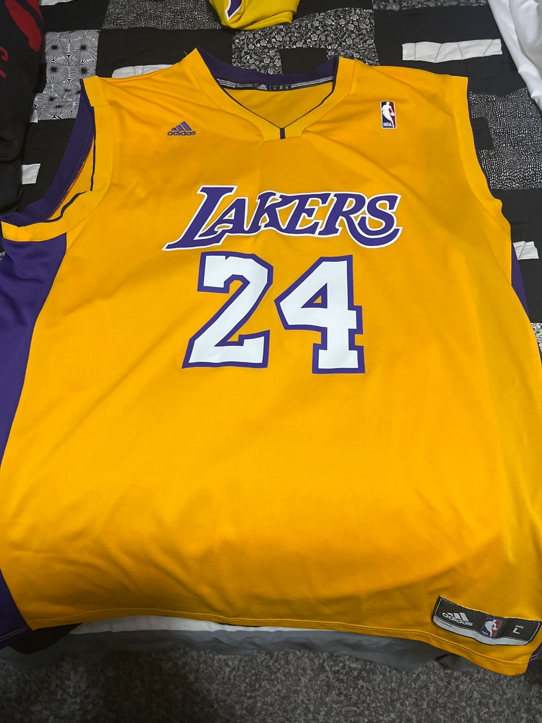 Selling an Adidas Lakers jersey featuring Kobe Bryant's iconic #24! It's a size large and in great shape. Perfect for any Lakers fan or collector.