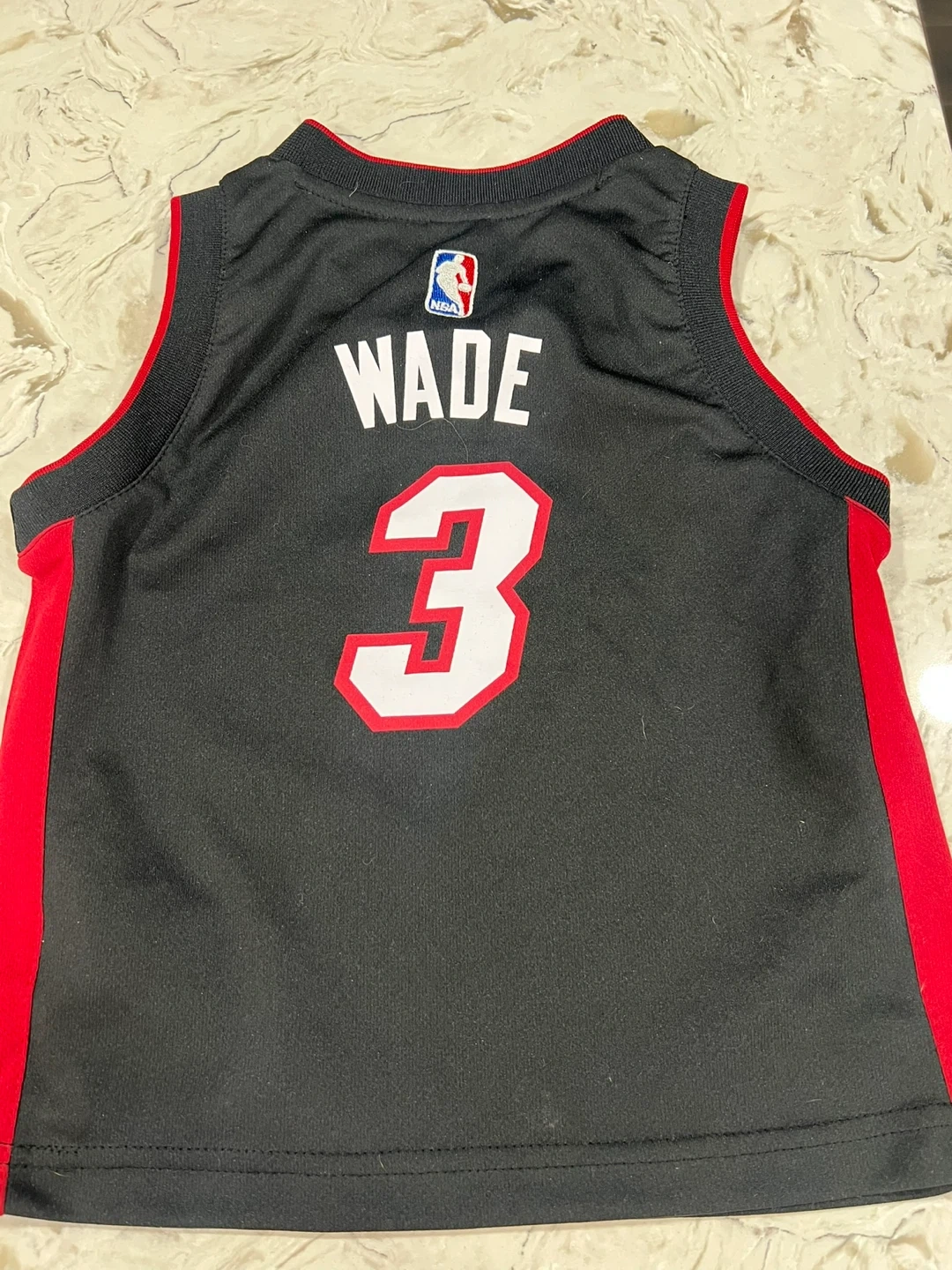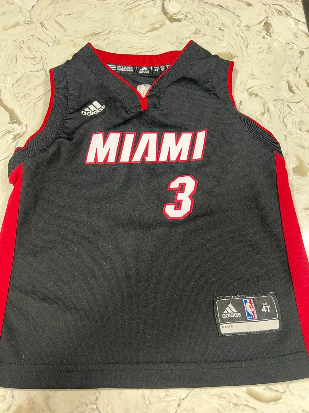 I have an Adidas Miami Heat Dwyane Wade jersey for sale. It's in great condition and is size 4T. The jersey features the classic Heat colours and design, perfect for any young fan!