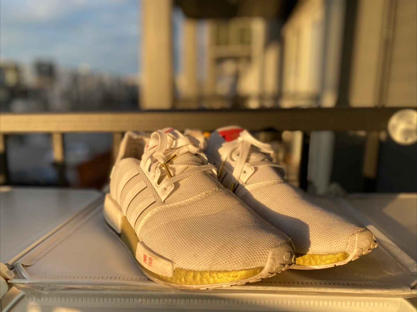 Selling a pair of Adidas NMD R1 Tokyo edition sneakers in white and gold. Message me for more photos No box $100 OBO
