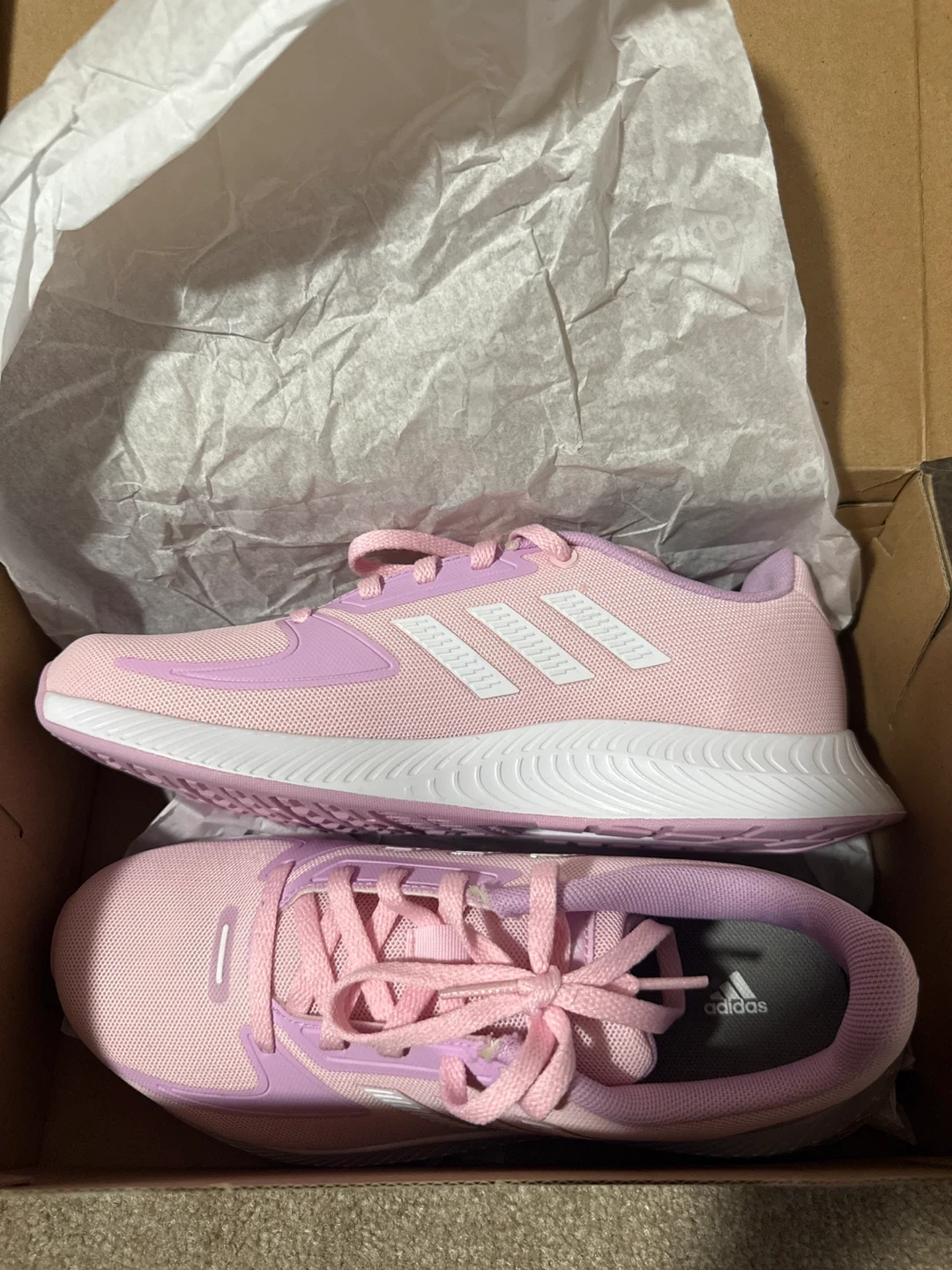 Selling a brand new pair of Adidas Runfalcon shoes. They are in their original box and have never been worn. Perfect for running or everyday wear! US size 5.
