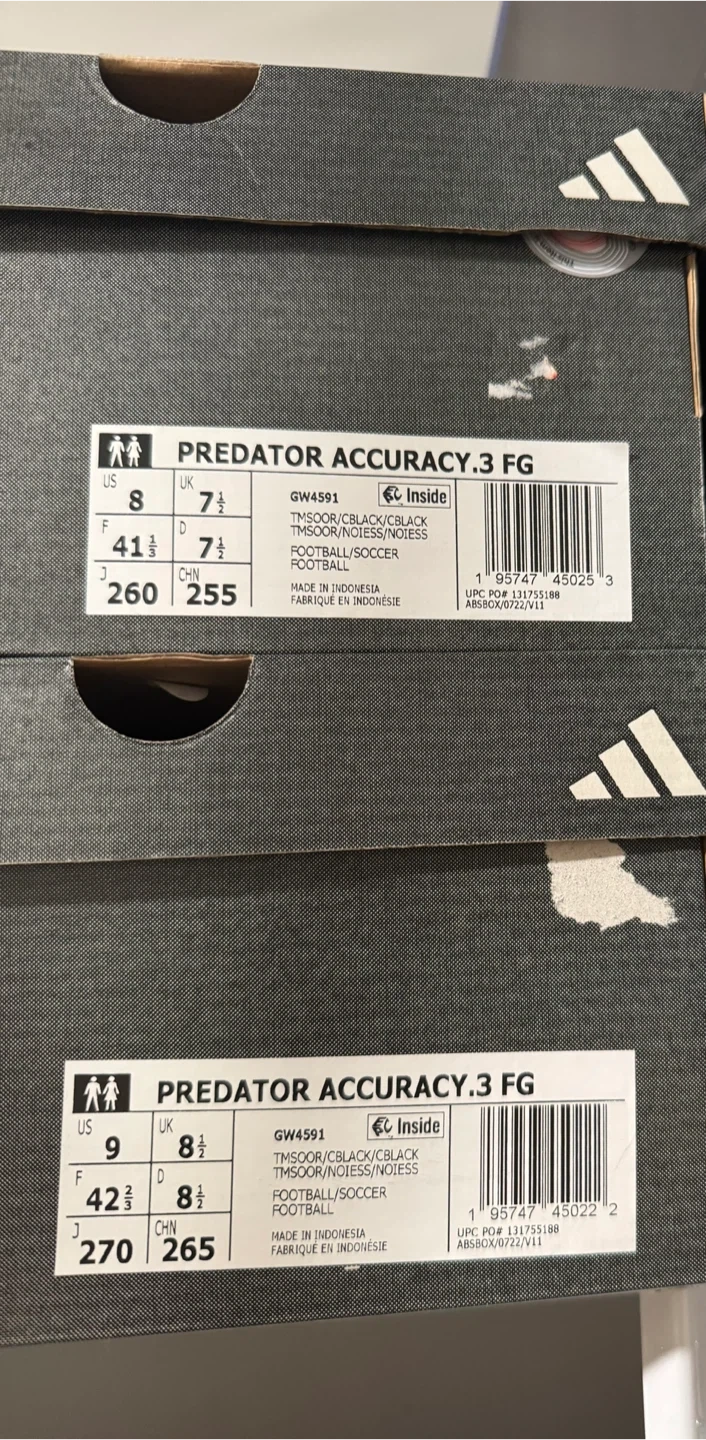 Selling a pair of Adidas Predator Accuracy.3 FG soccer cleats in size US 8. $30 Price is firm. First come first served.