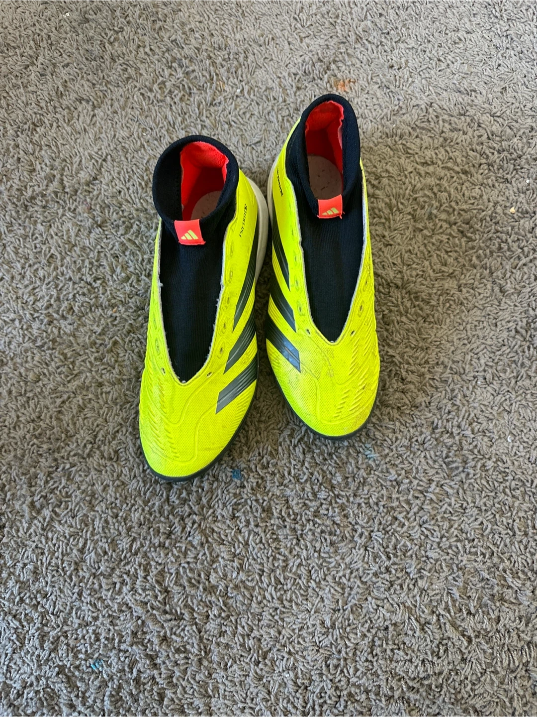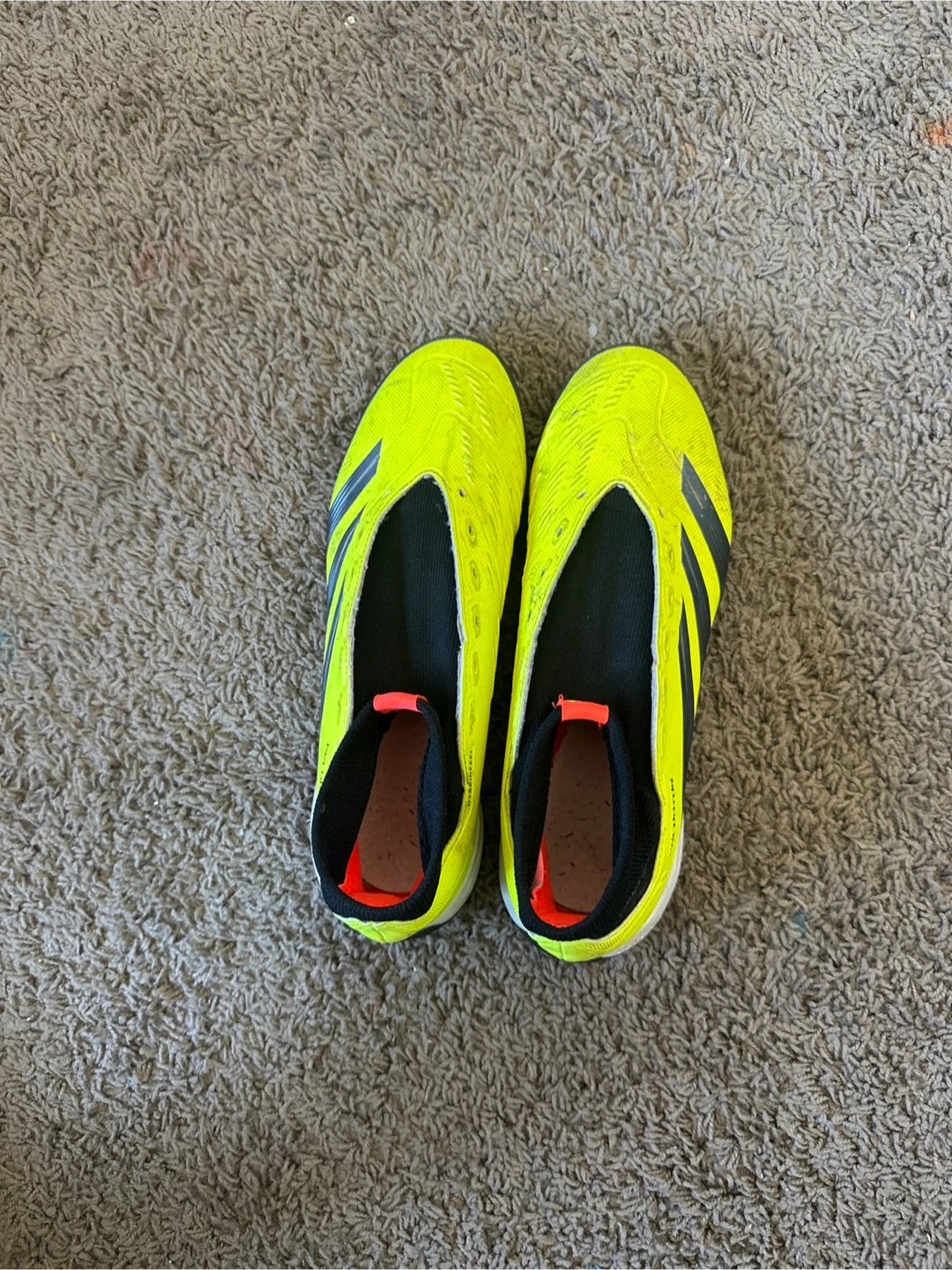 Selling a pair of Adidas Predator soccer cleats in a vibrant yellow and black colourway! They're in good used condition and ready for the field. Size 8 US