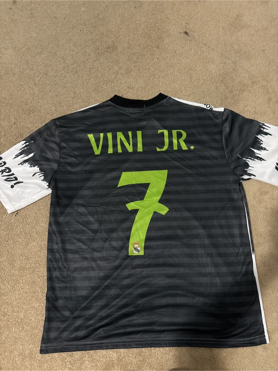 Selling an Adidas Real Madrid jersey featuring Vini Jr. and the number 7 on the back. It's in great condition and ready for a new fan!