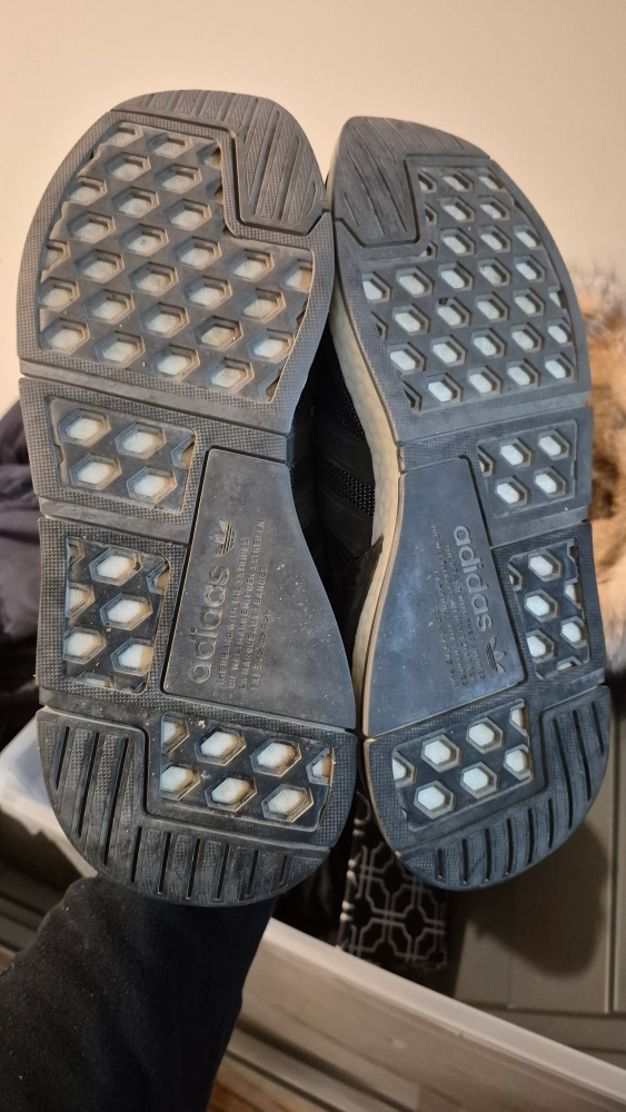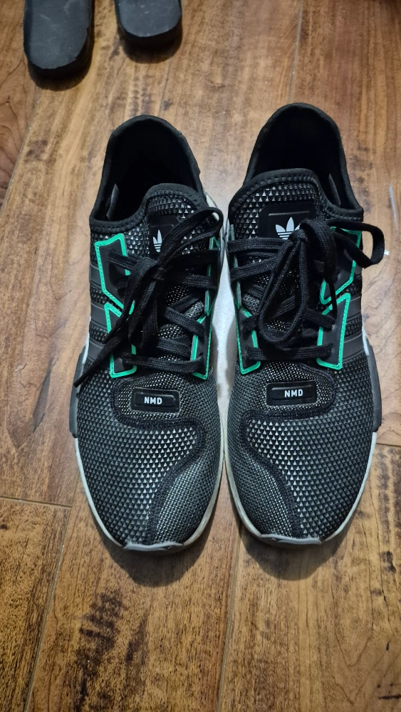 Adidas sneakers. Black with green accents. End Plastic Waste initiative. Good condition, minor wear.