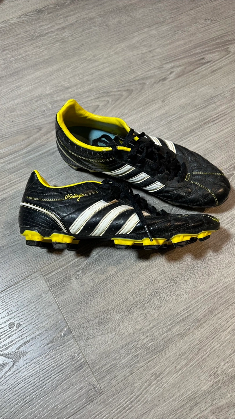Selling a pair of Adidas Kaiser 5 Liga soccer cleats. Some signs of wear but are still in good condition for playing. Great for anyone looking for a reliable pair of soccer shoes. Size 9