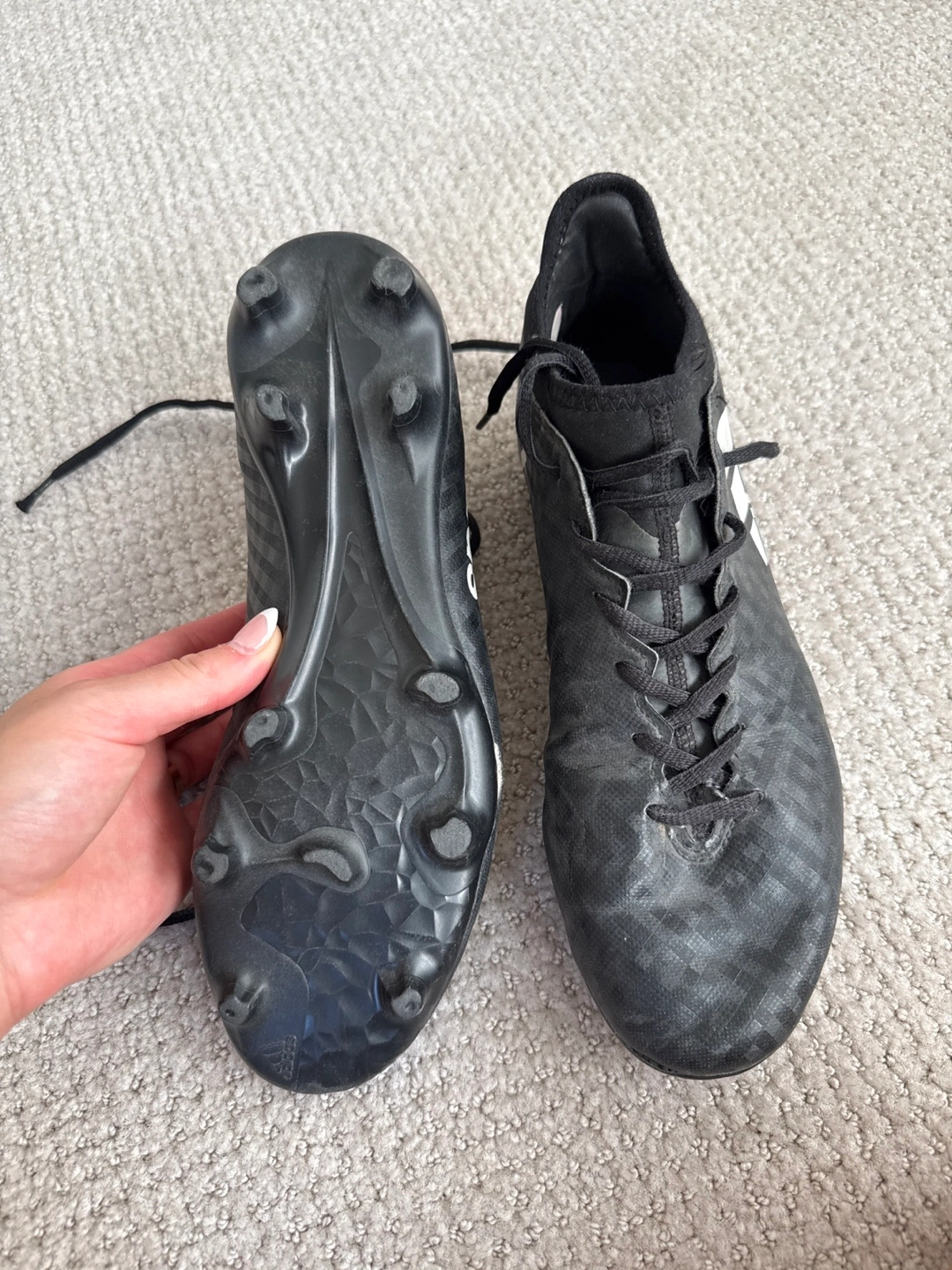 Selling a pair of black Adidas soccer cleats. They're in good condition and ready for the field! Worn for one rugby season
