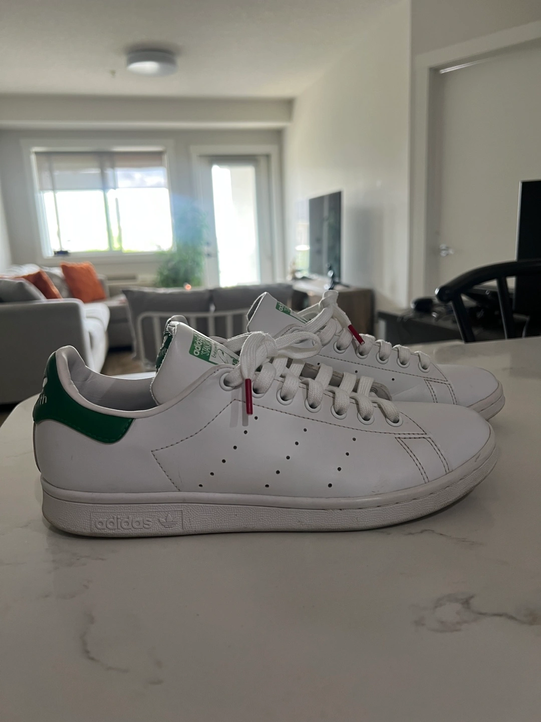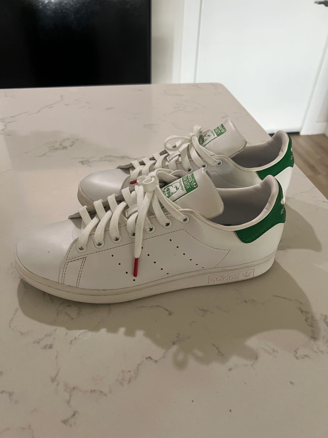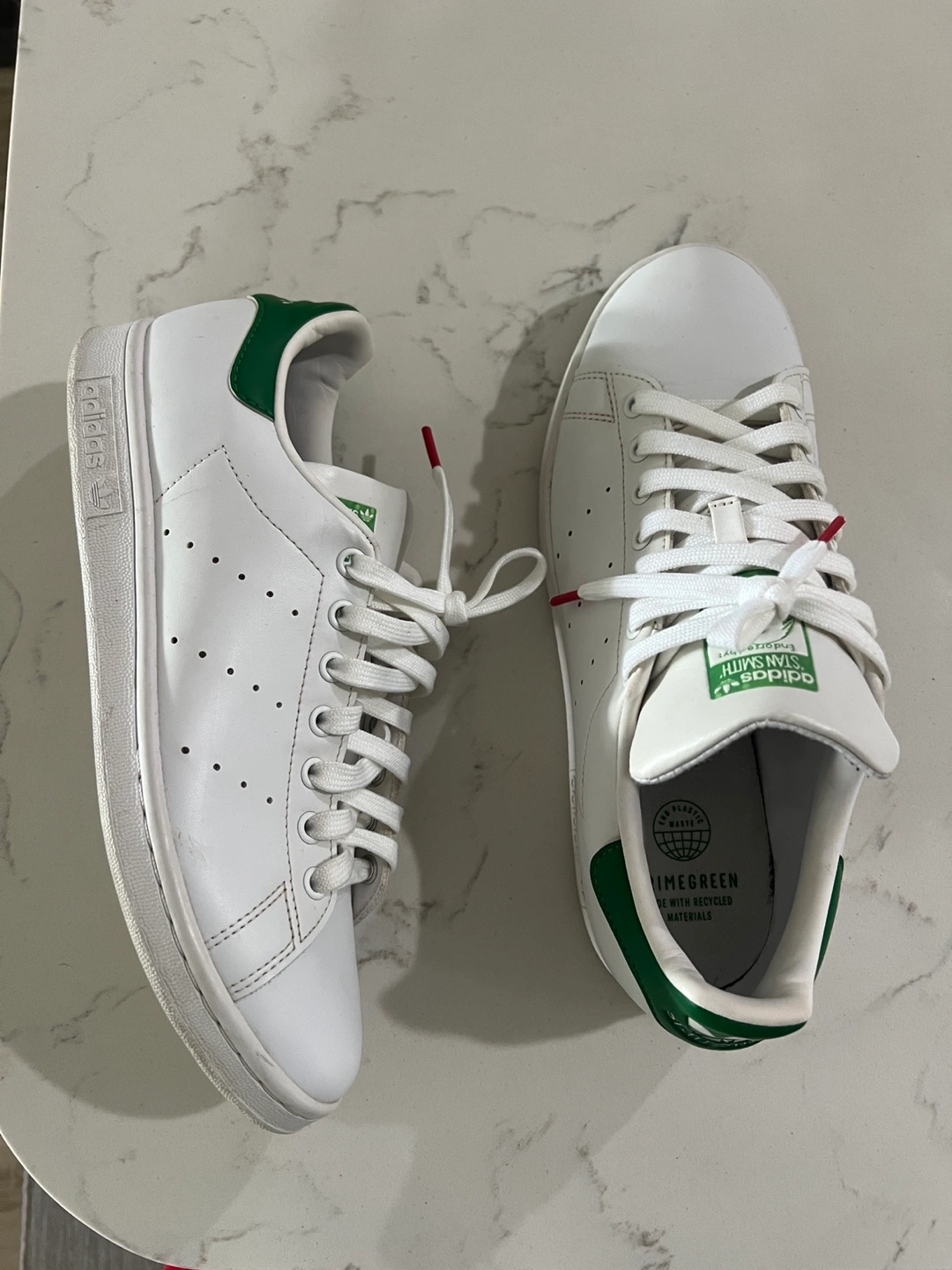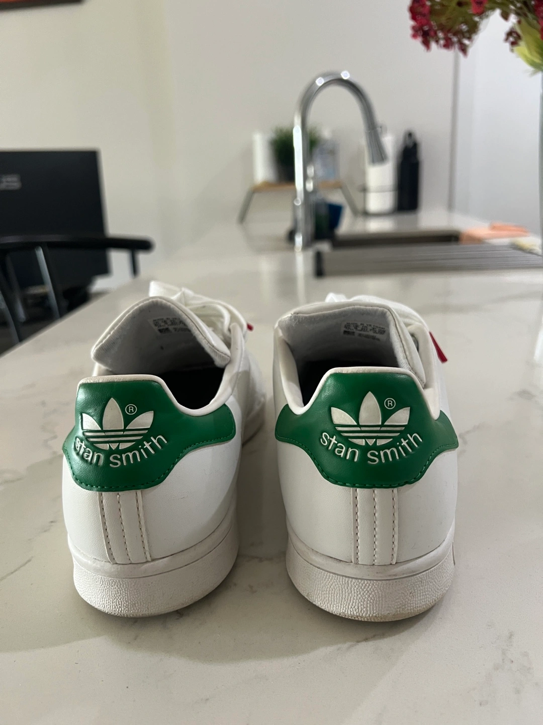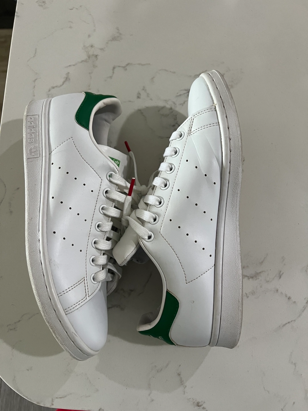 Selling my original adidas Stan Smith shoes. I wear size 10.5 and the shoe is 9.5 US size. I got it as a gift and have managed to wear it a fear times even though tight. But decide to sell it now. Size: 9.5 US
