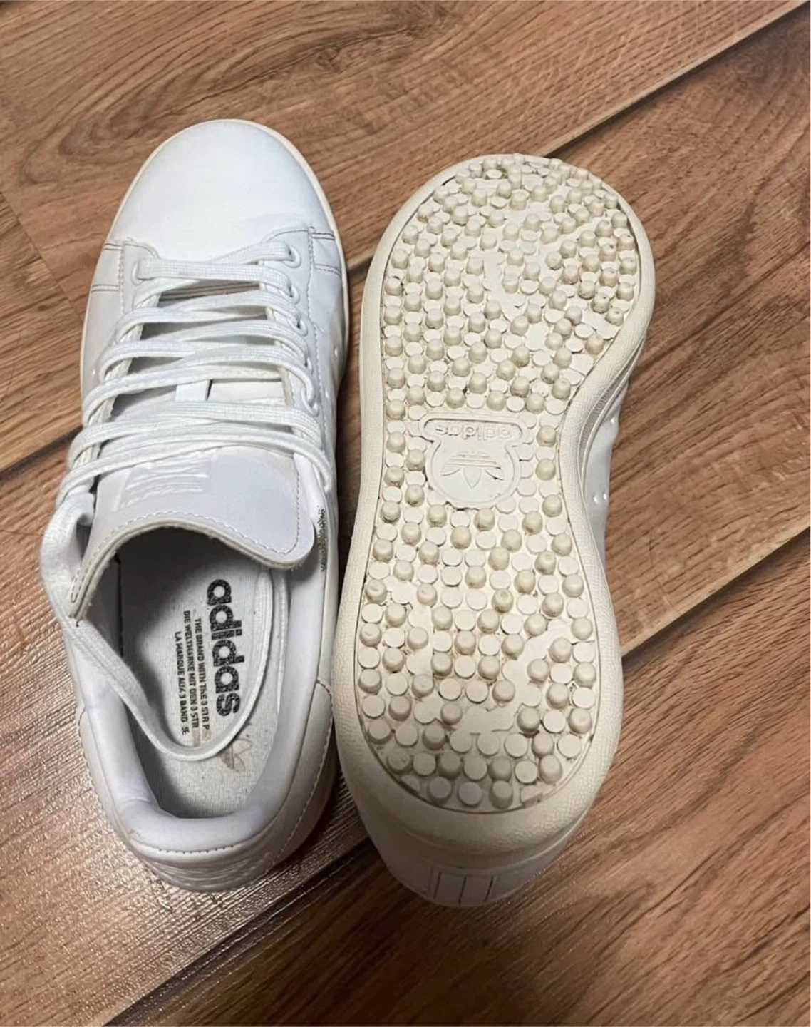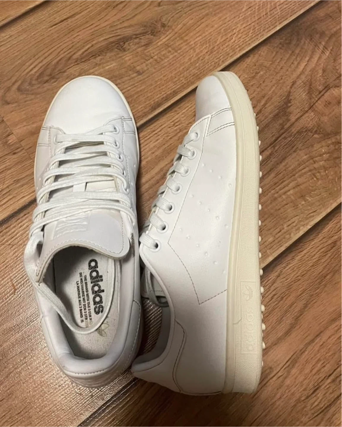 Selling a pair of Adidas Stan Smith sneakers in white. They are in used condition, as shown in the photos. Size is US 8 / UK 7.5 / JP 255. Great golf shoes or everyday.