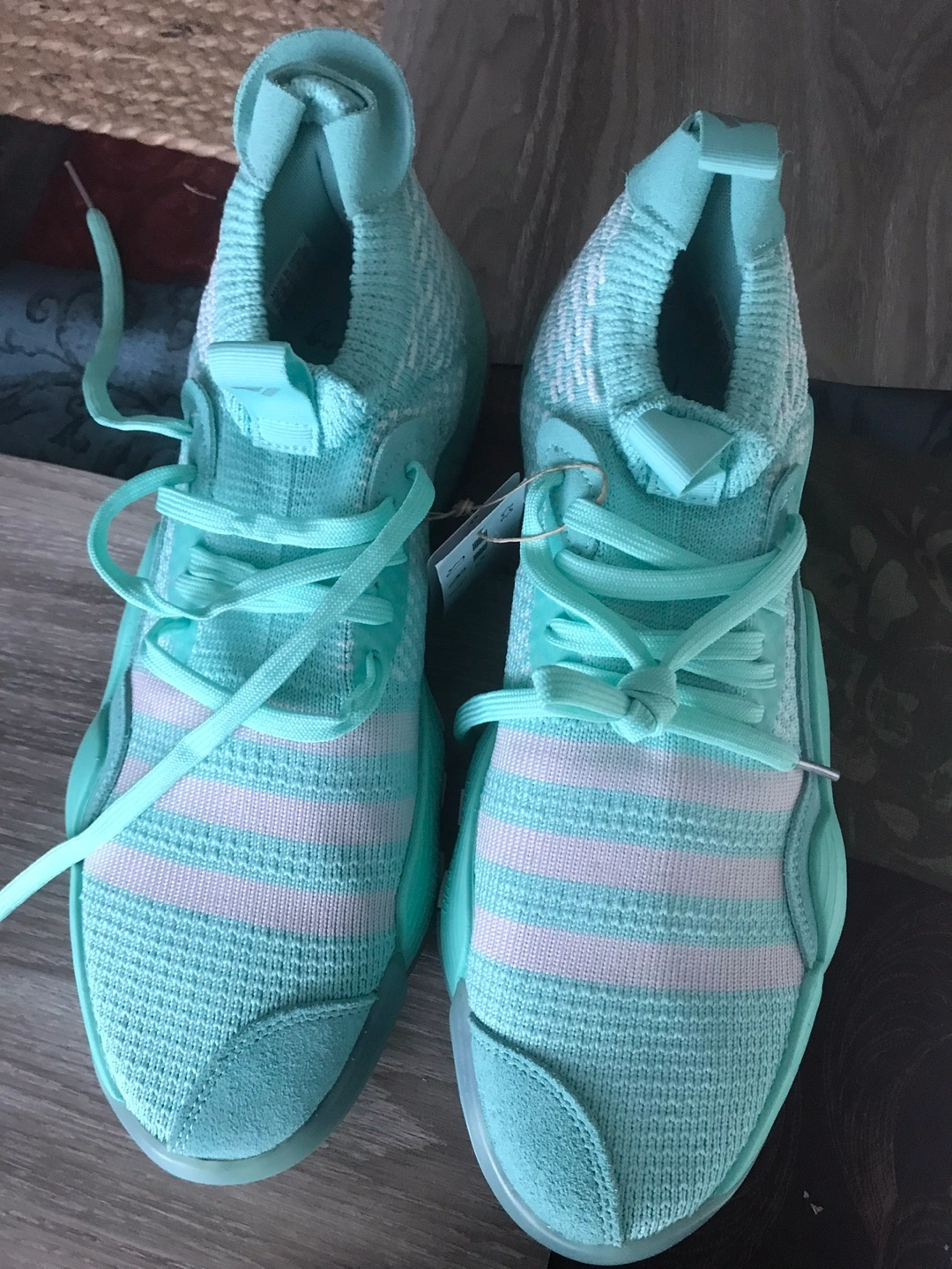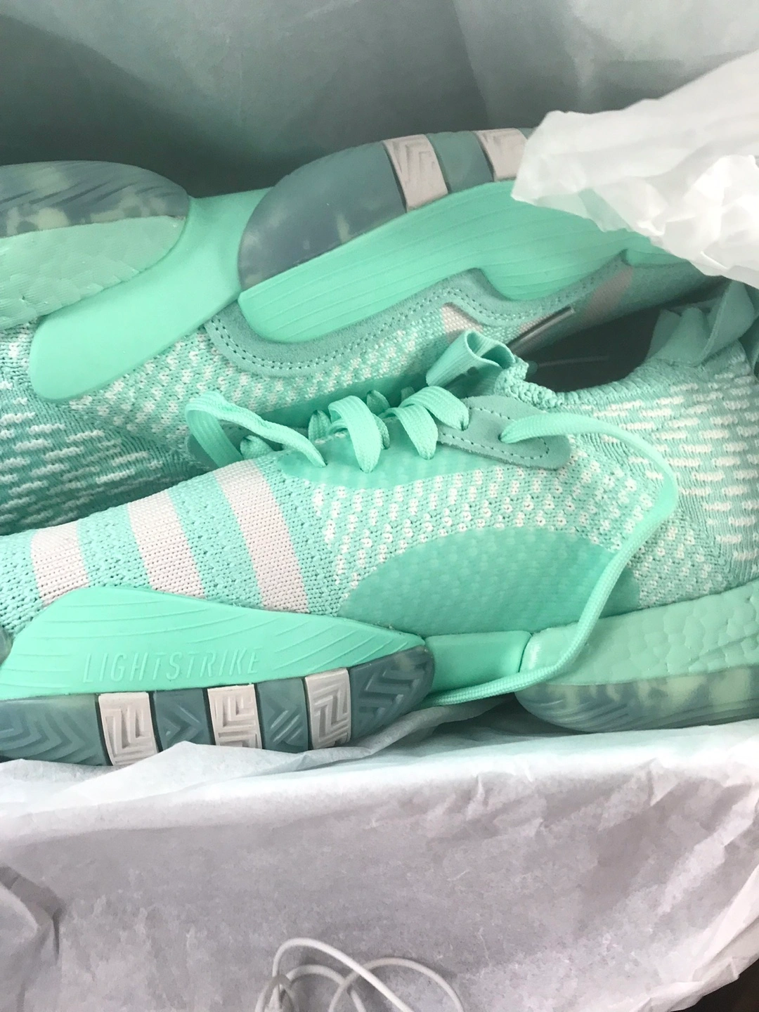 These Adidas Trae Young 2 basketball shoes are in great condition and ready for the court or casual wear! The light mint green colour is super fresh. They feature the Lightstrike cushioning for comfort and responsiveness. Size is US 11