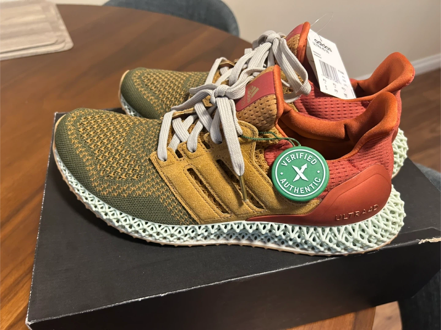 Selling a brand new pair of Adidas Ultra 4D SS sneakers in a unique green and brown colourway! These are a US size 9, UK 8.5, and EU 42 2/3. Comes with the Box this is the Limited Edition goes over $600 Pick up in Richmond