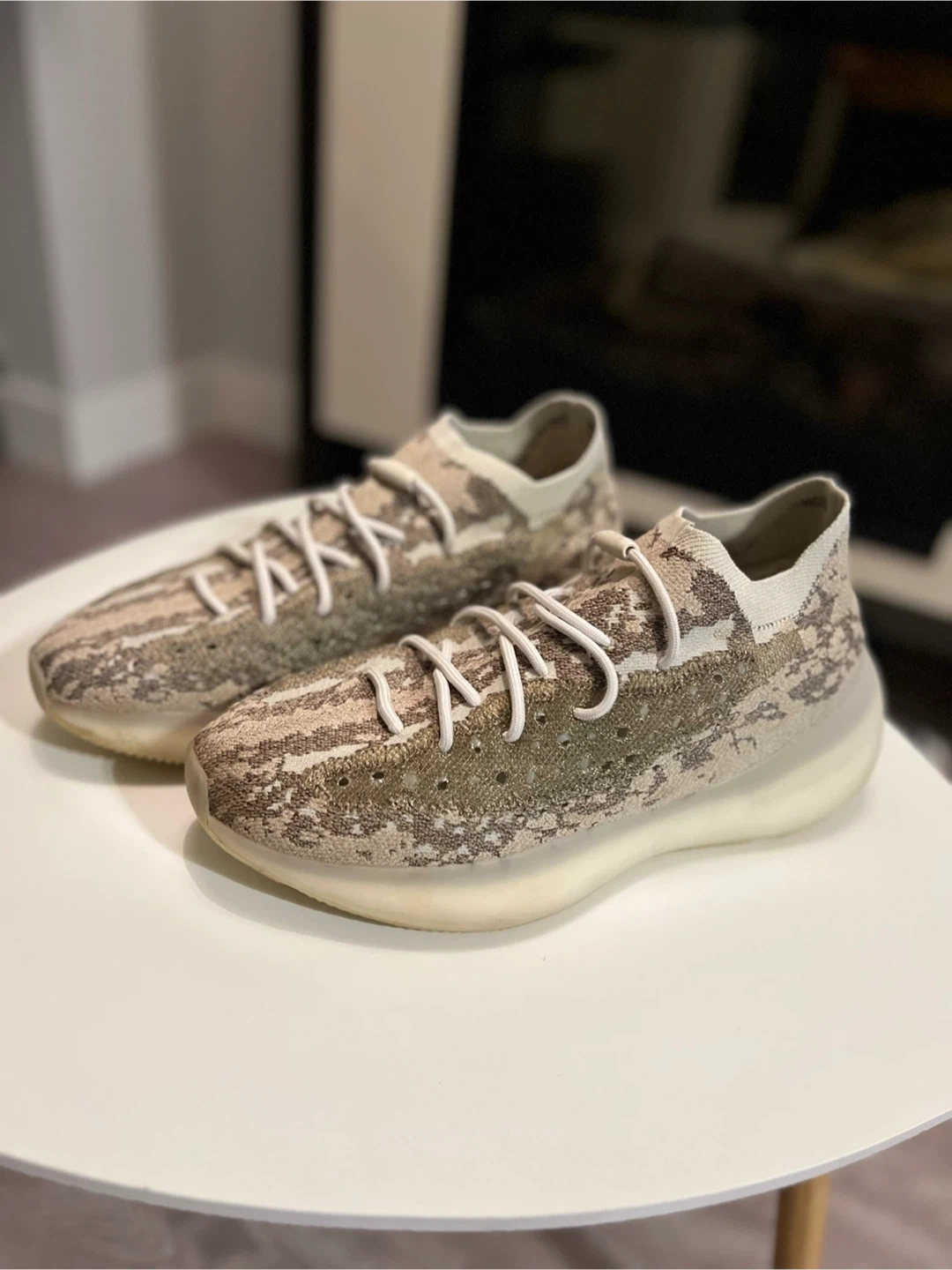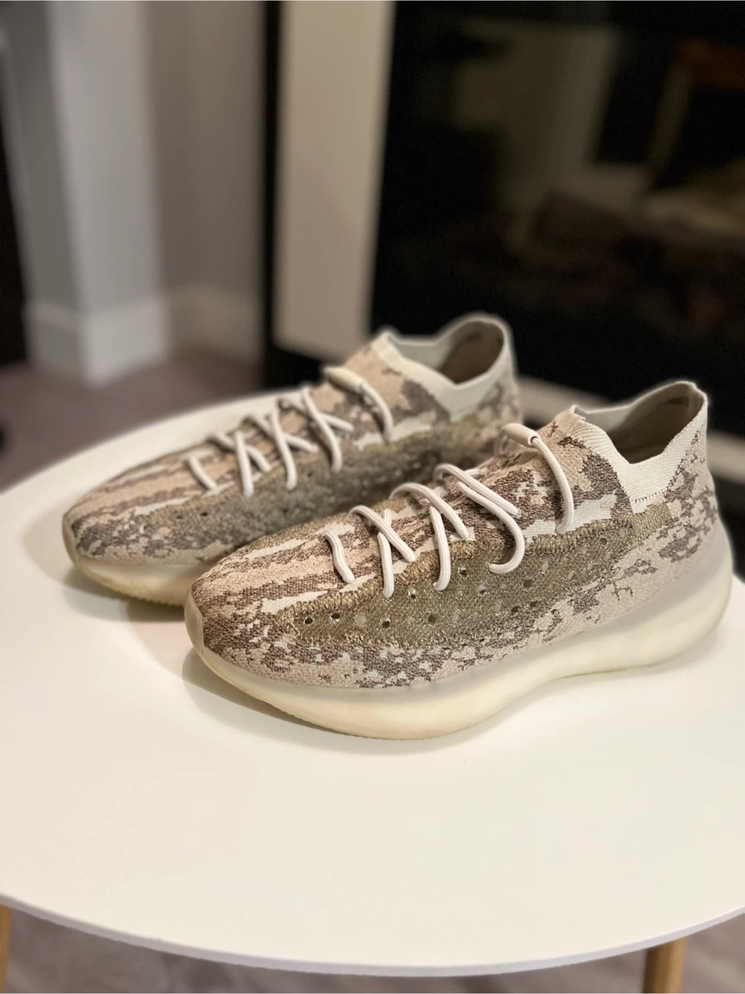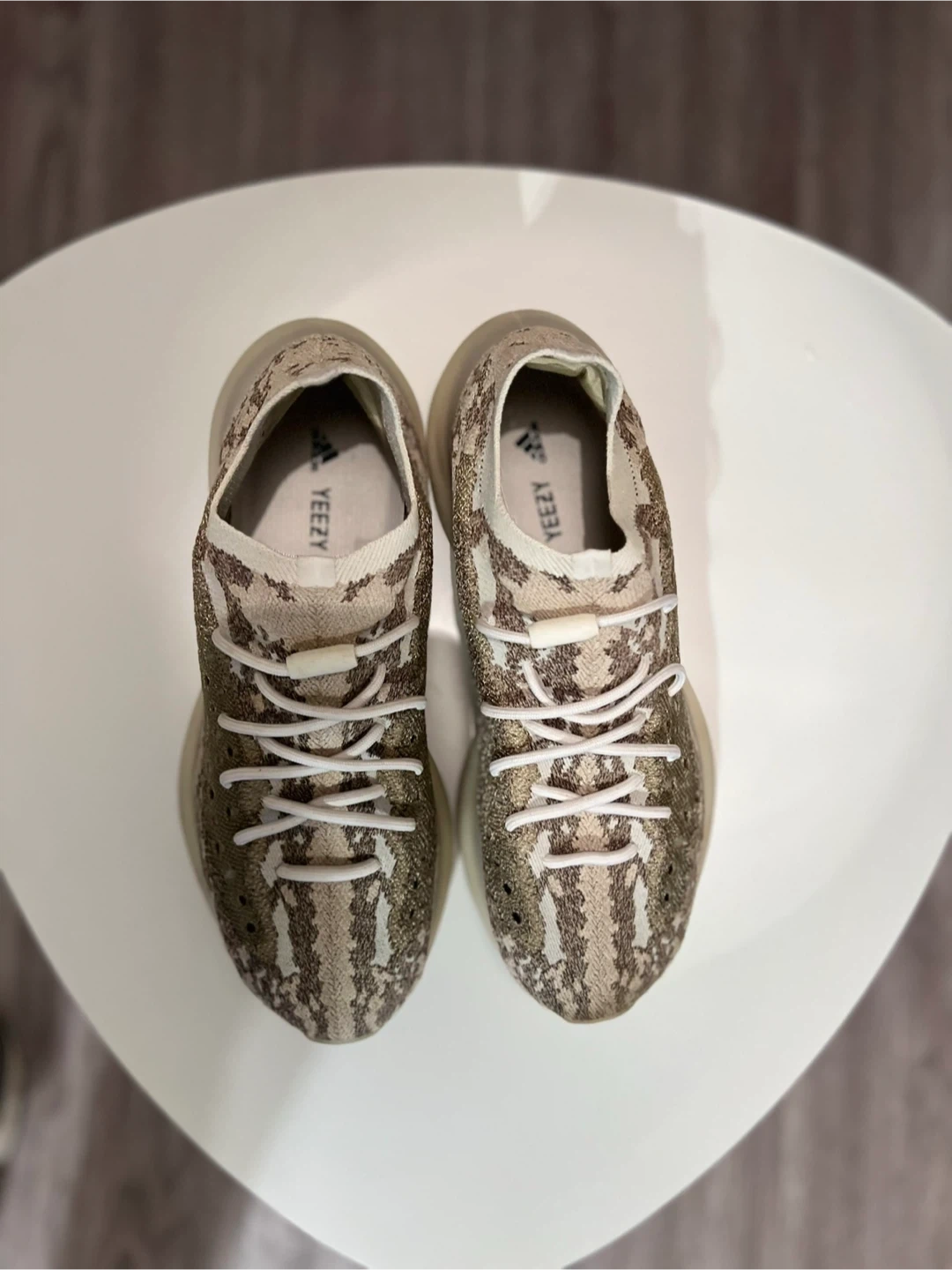Selling a pair of Adidas Yeezy 380 sneakers in the 'Pyrite' colourway. These are super comfy and have a unique design that stands out. Great for everyday wear or adding to your sneaker collection! No box Excellent condition Bearly worn No damage at all