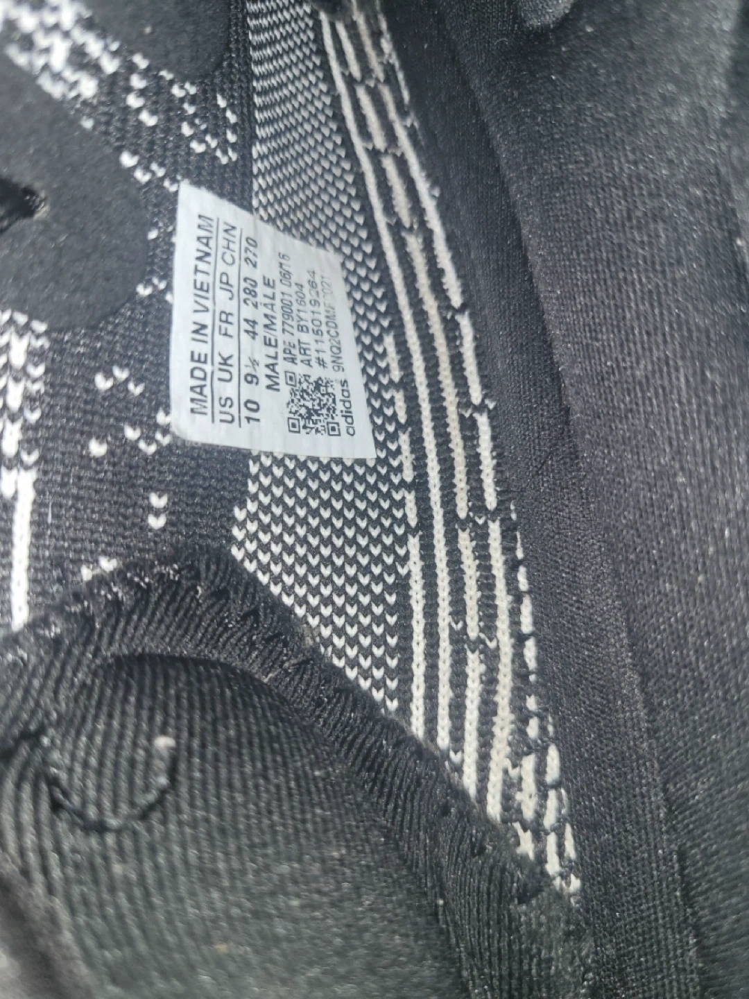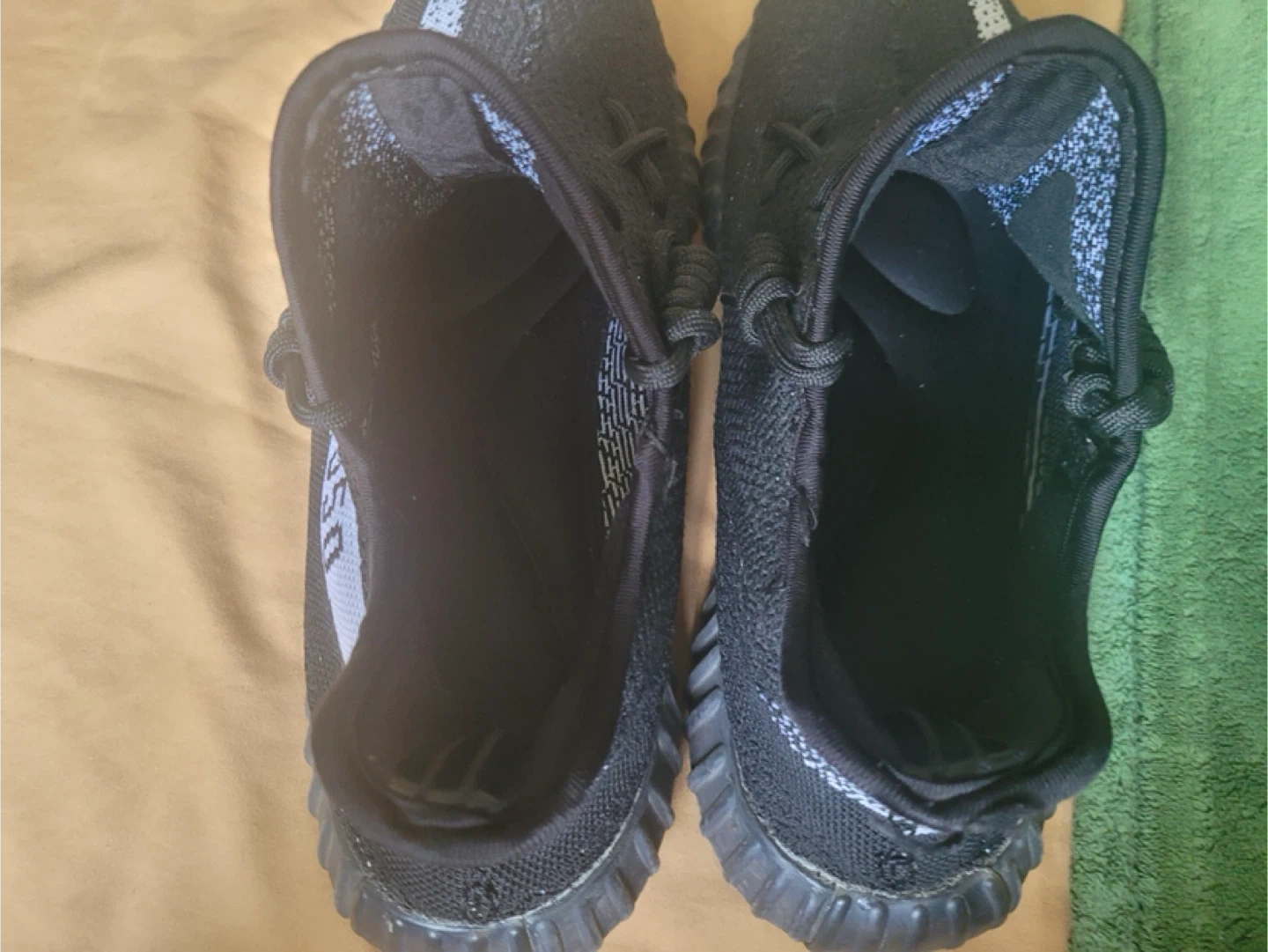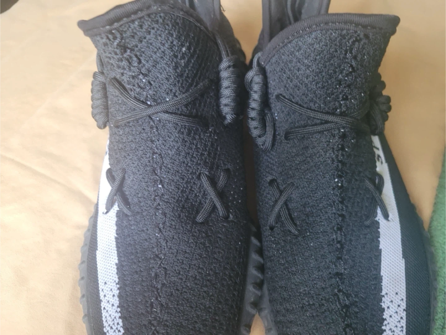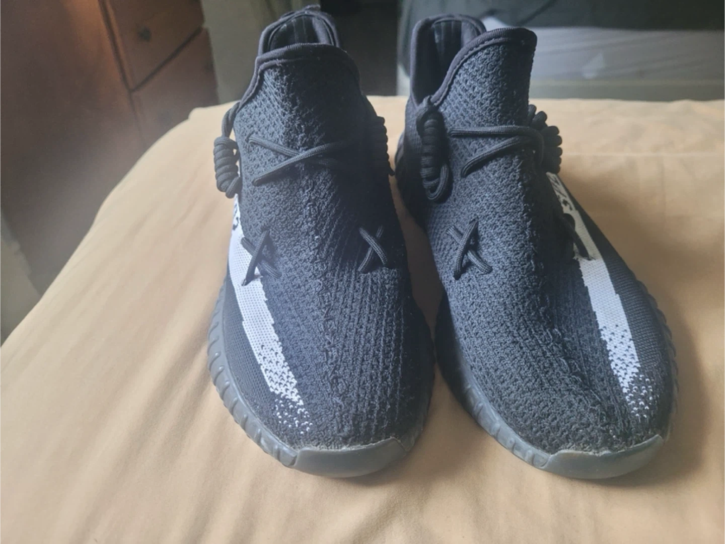 Selling a pair of Adidas Yeezy Boost 350 in the Oreo colourway. These are in used condition, but still have lots of life left! The 'SPLY-350' text is visible on the side, a signature detail of this model