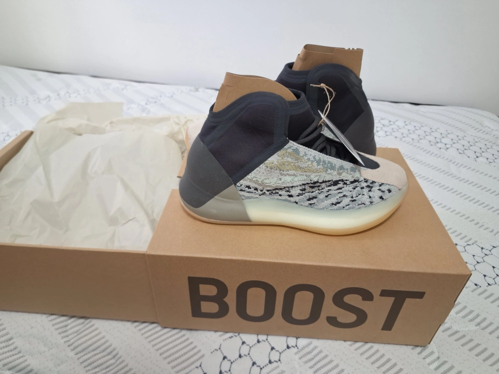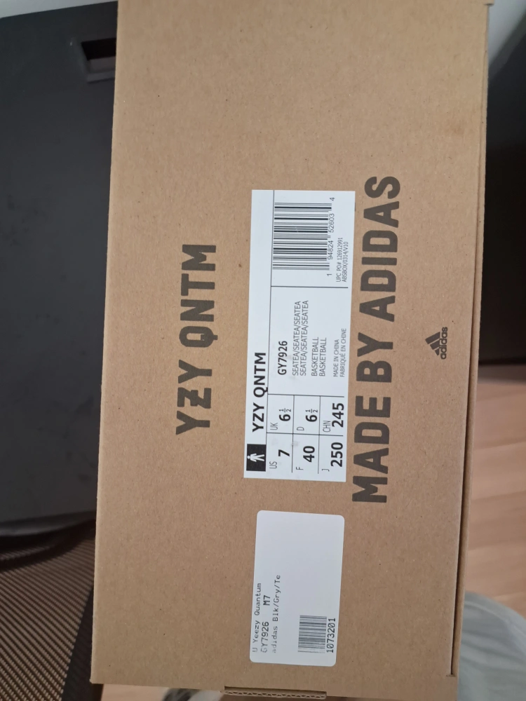 Selling a pair of Adidas Yeezy Quantum basketball shoes in a size 7. These shoes come with the original box. The colour is Blk/Gry/Te.(unisex, size US7)