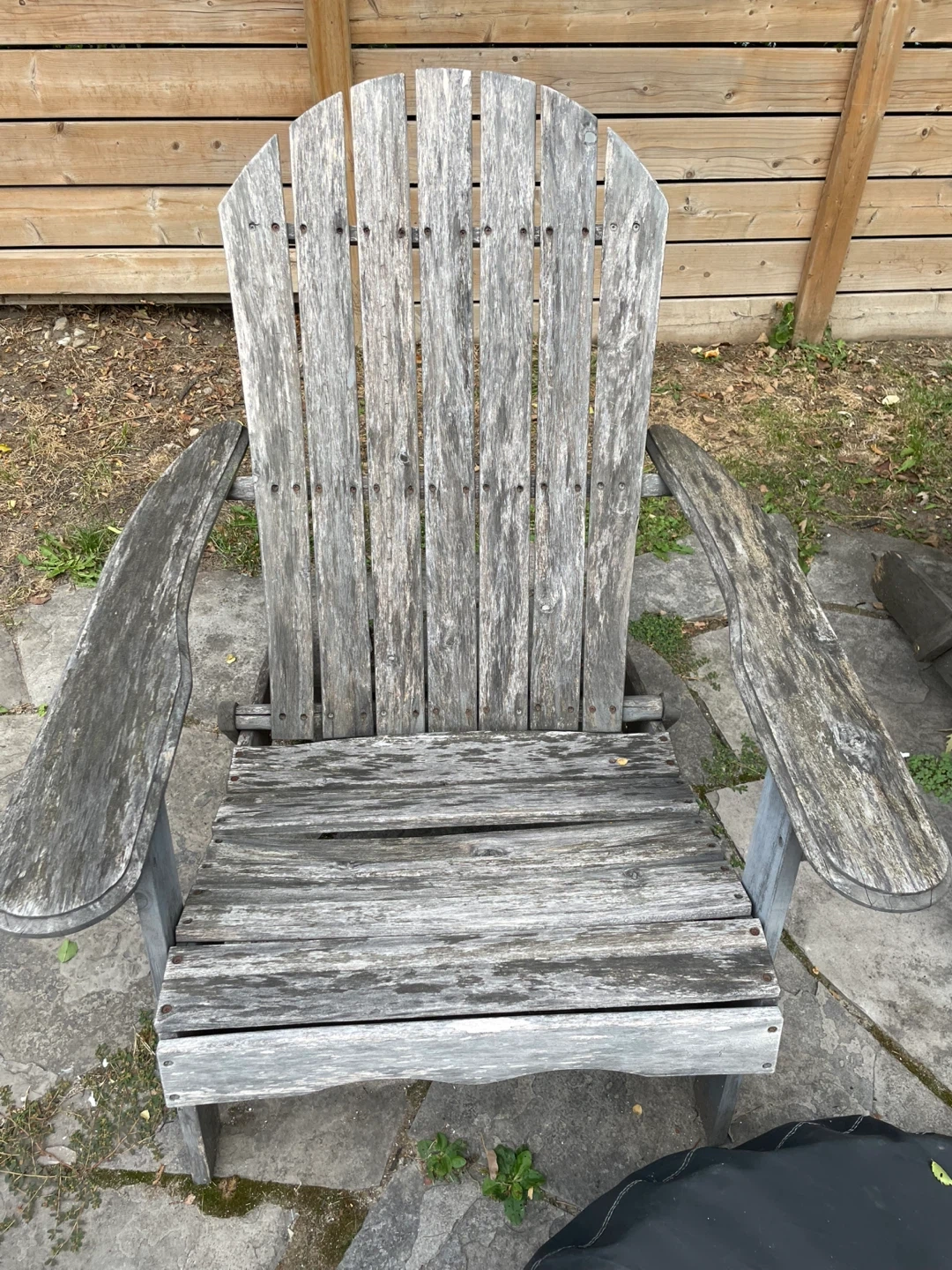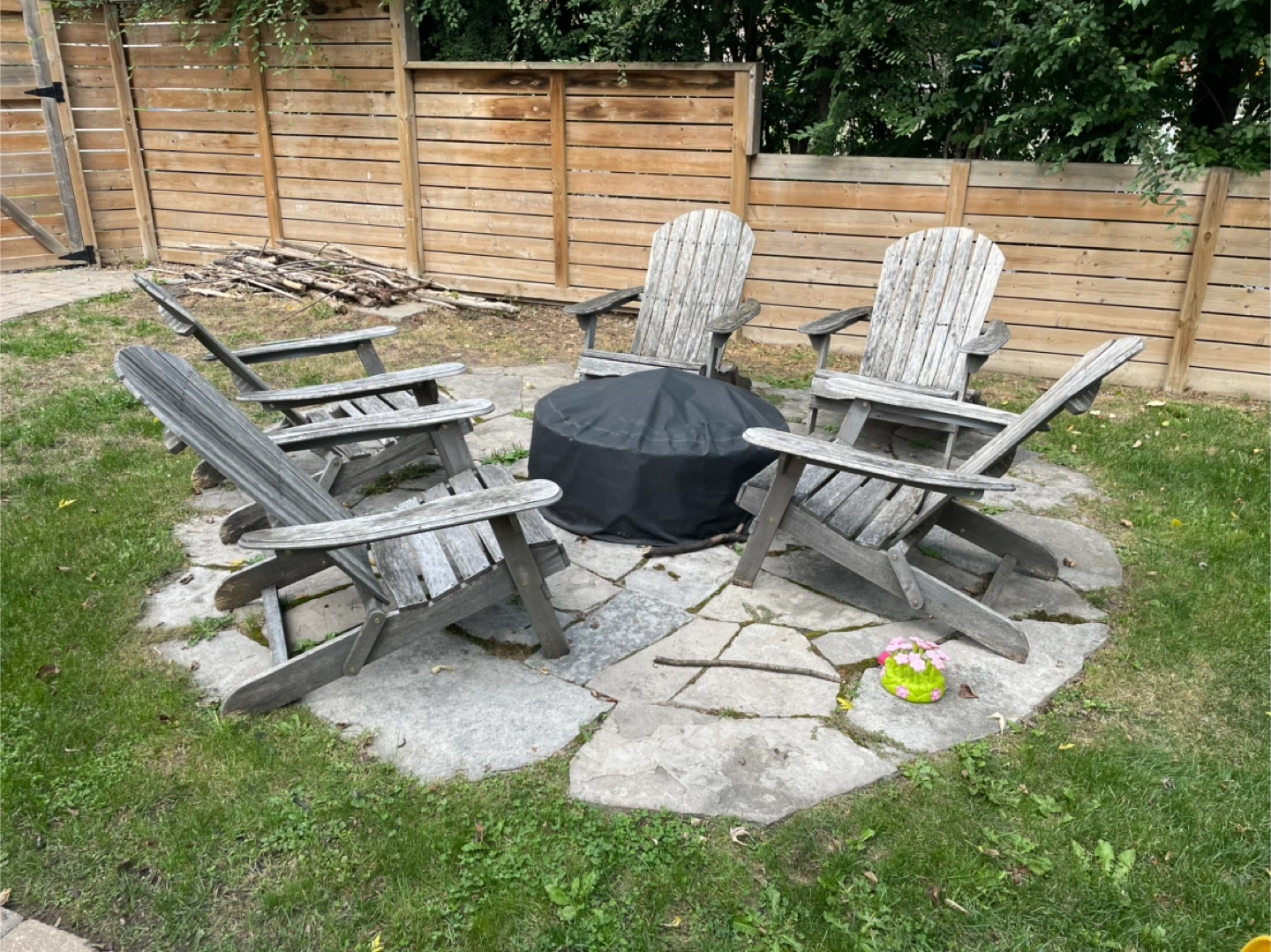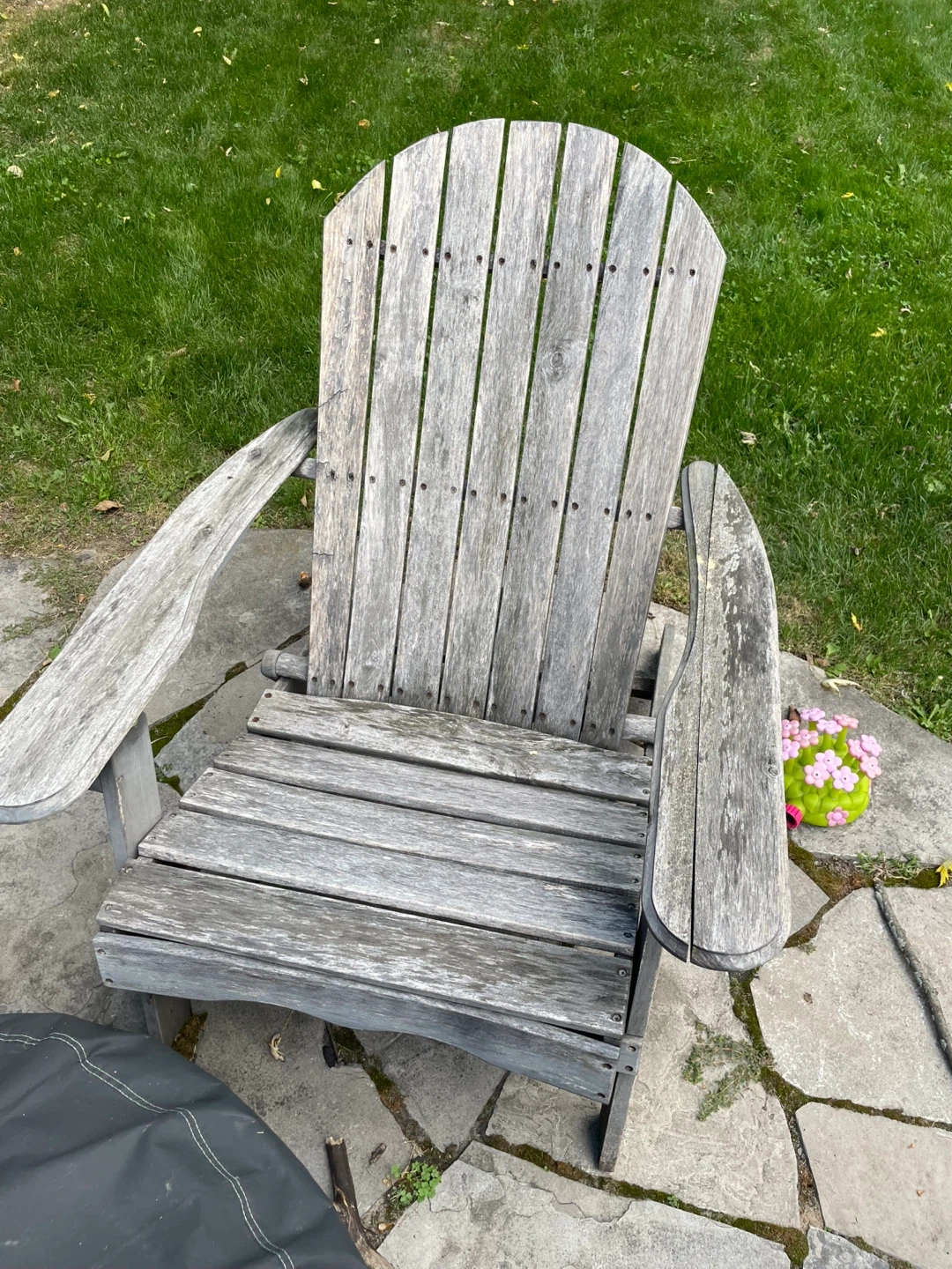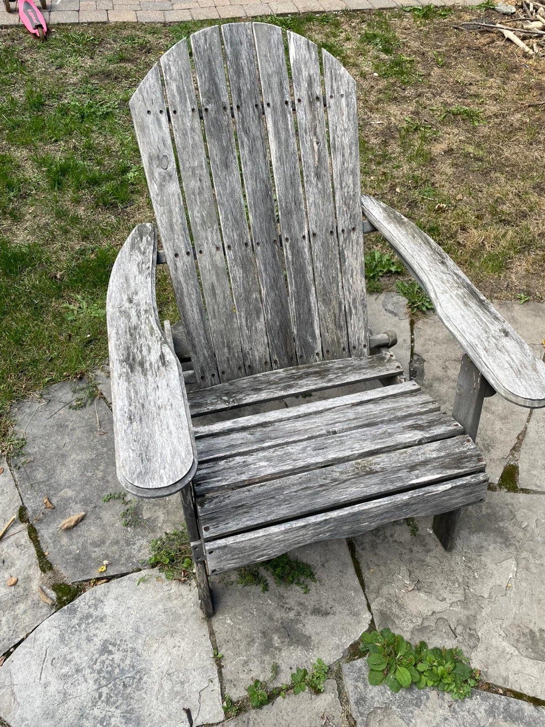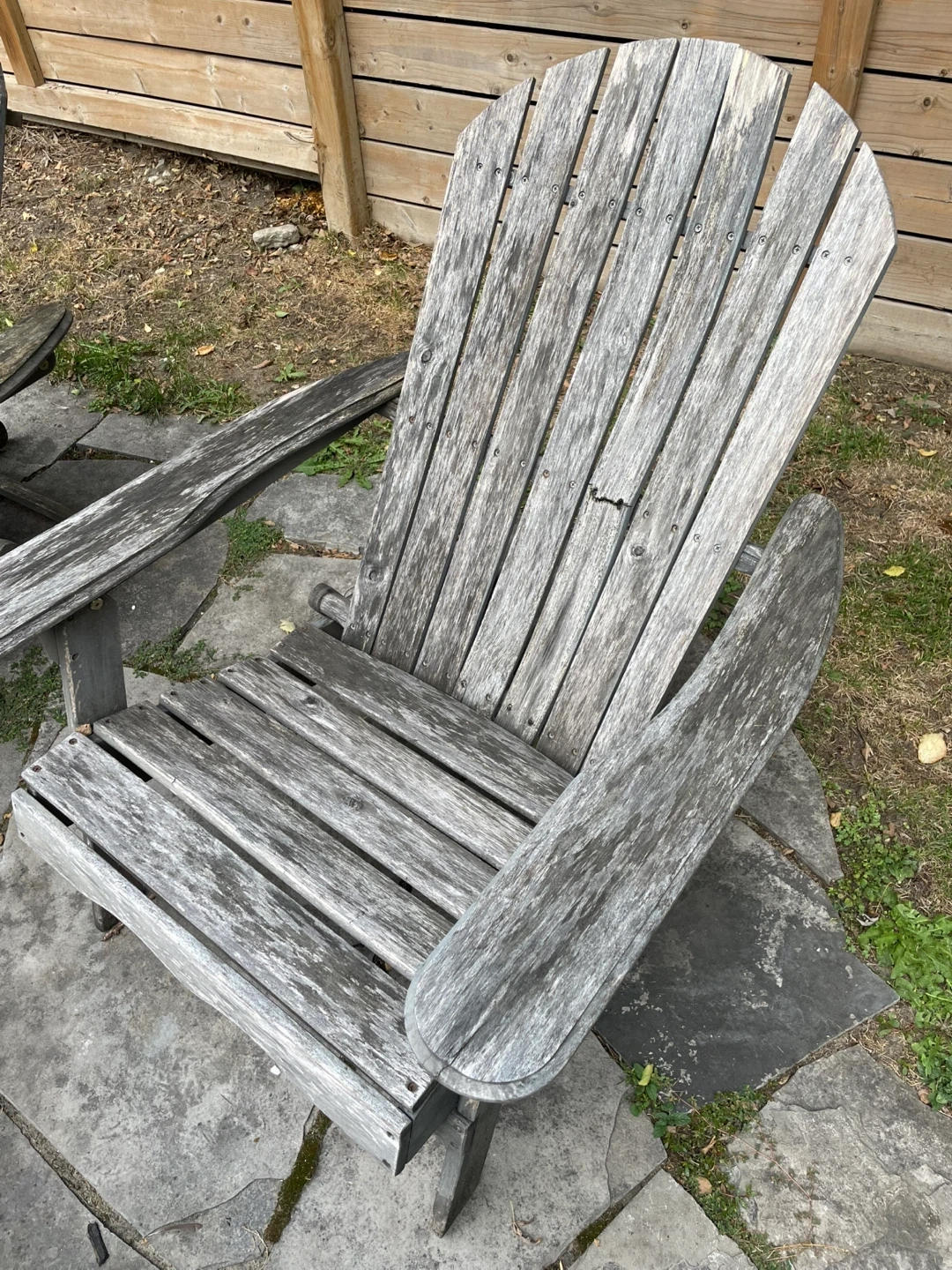 Selling 6 used folding Adirondack chairs. They show some signs of wear, as seen in the photos. Great for around a fire pit!