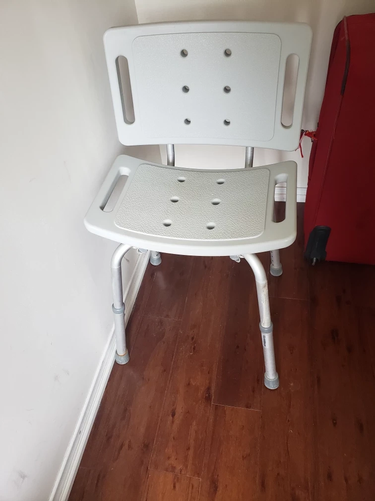 Selling a bath and shower chair in great condition! It features an adjustable height and a backrest for added comfort and support. Perfect for anyone needing a little extra help in the shower or bath. The seat is textured to prevent slipping and the legs have rubber tips for stability