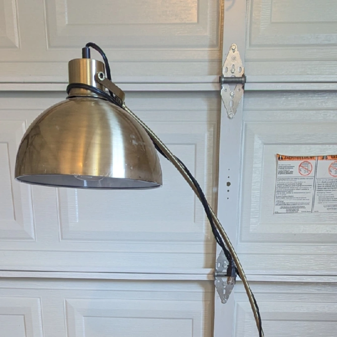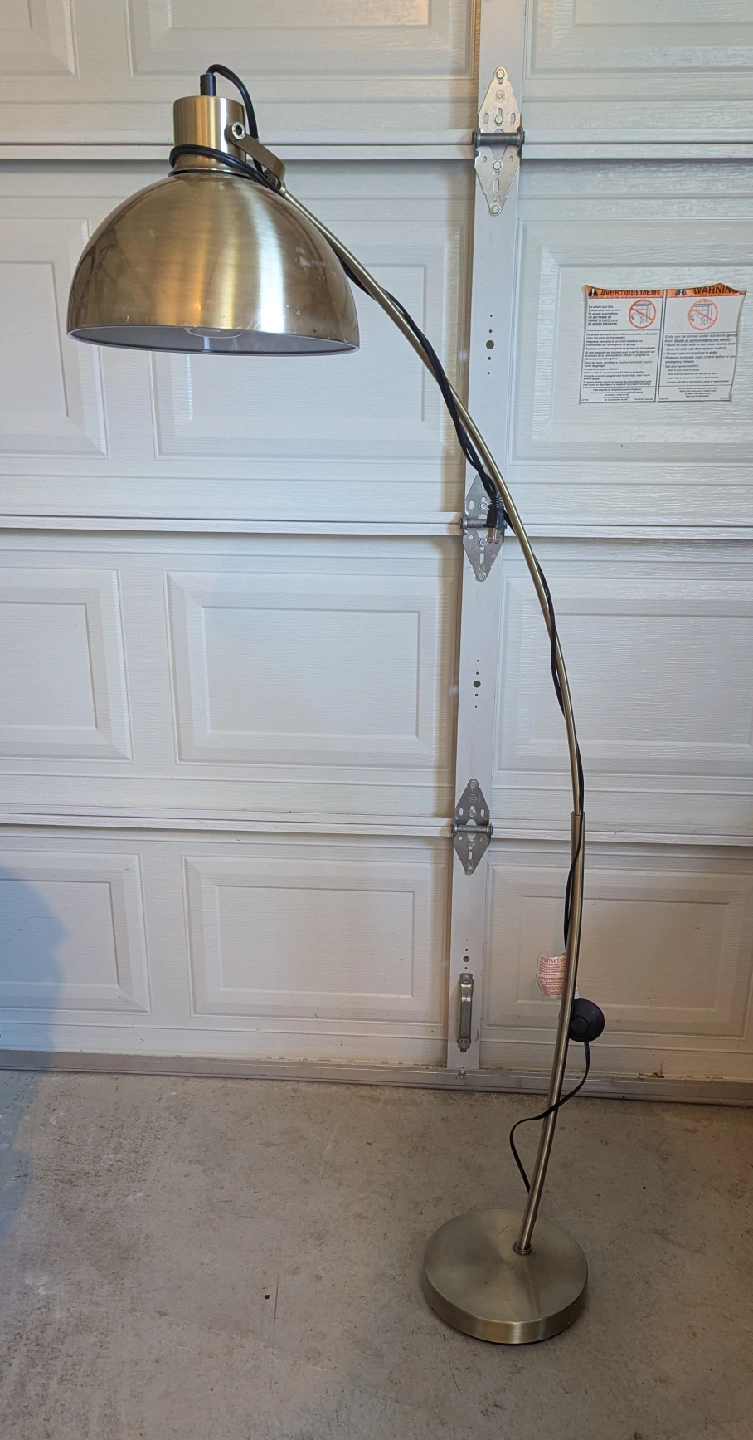 Here's a floor lamp with an adjustable arm and a brass finish! It would look great in any living room or office space