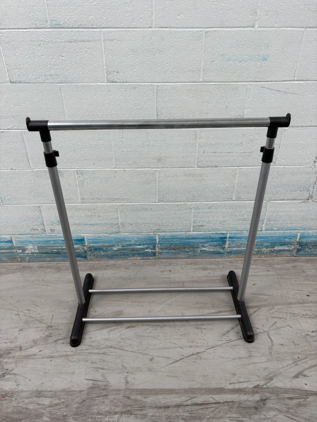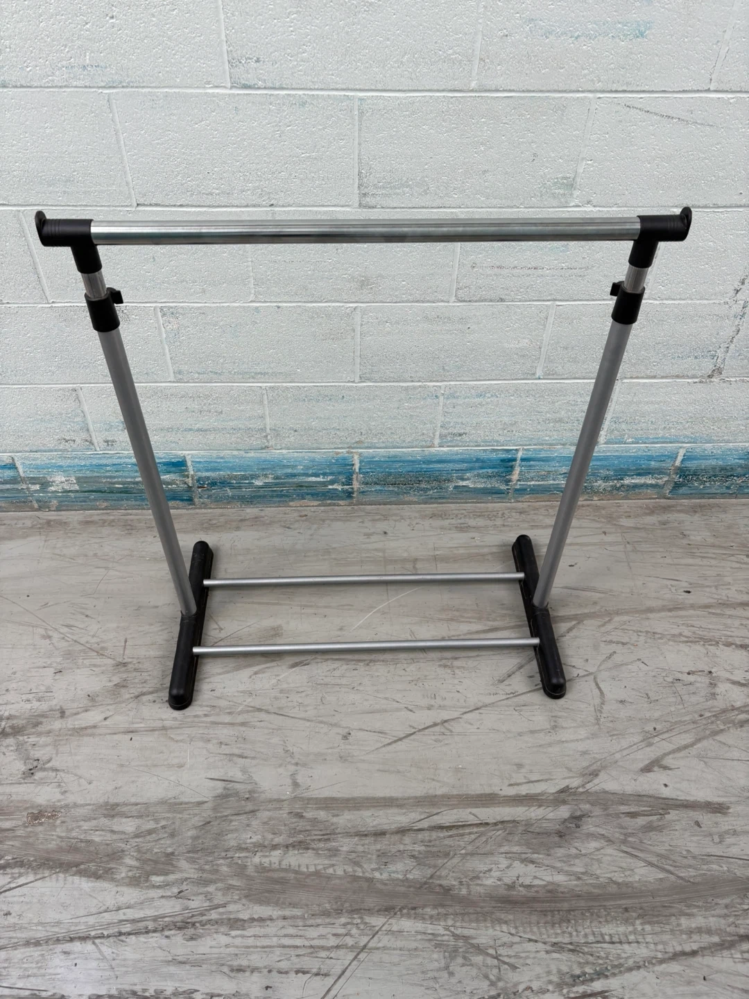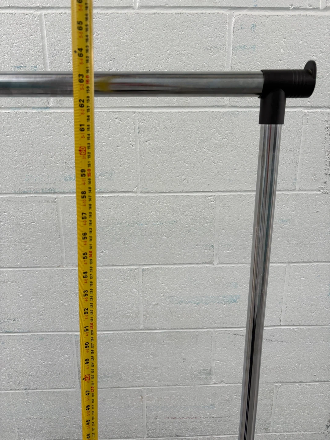 🧡like new Adjustable Clothes Rack - Silver & Black Selling a clothes rack in great condition! It's silver with black accents and adjustable in height, reaching up to 40 inches. Perfect for extra closet space or organizing your wardrobe Measurements in last couple of pics $10 Pick up Victoria Park & O’Connor area