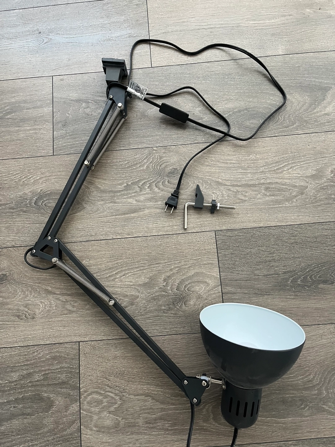 Selling a black adjustable desk lamp. It's in great condition and perfect for a home office or study space. The lamp has an adjustable arm, so you can easily direct the light where you need it. It's a simple and functional design that will fit in with any decor Pick up metrotown