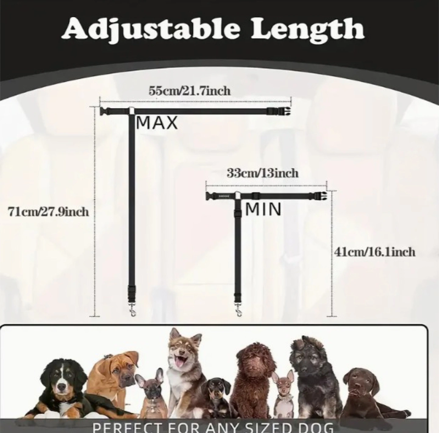 Brand new, purple, adjustable dog car headrest restraint! Perfect for any sized dog, it ensures your furry friend stays safe and secure during car rides. The length is adjustable from 33cm/13inch to 71cm/27.9inch.