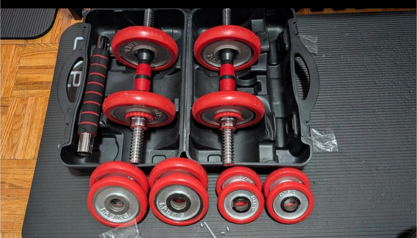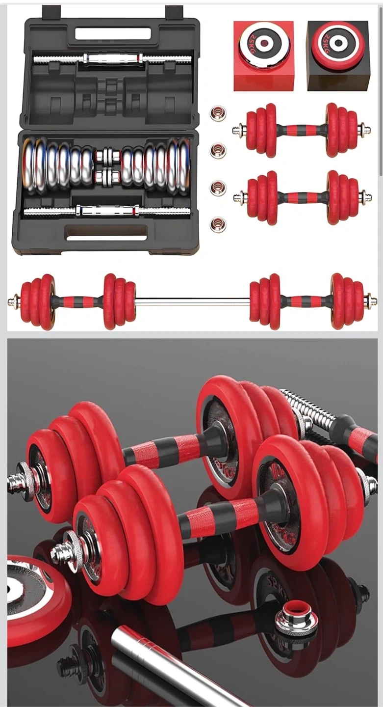 HAKENO Adjustable Weights Dumbbell Barbell Set Anti-Slip Metal Handle 3-in-1 Cast Iron Free Weights Dumbbells Set with Connecting Rod for HomeBody Workout Fitness Get ready to pump some iron with this adjustable dumbbell set! It comes with a handy carrying case to keep everything organized. The set includes various weight plates so you can customize your workout. Perfect for home gyms or anyone looking to stay in shape!