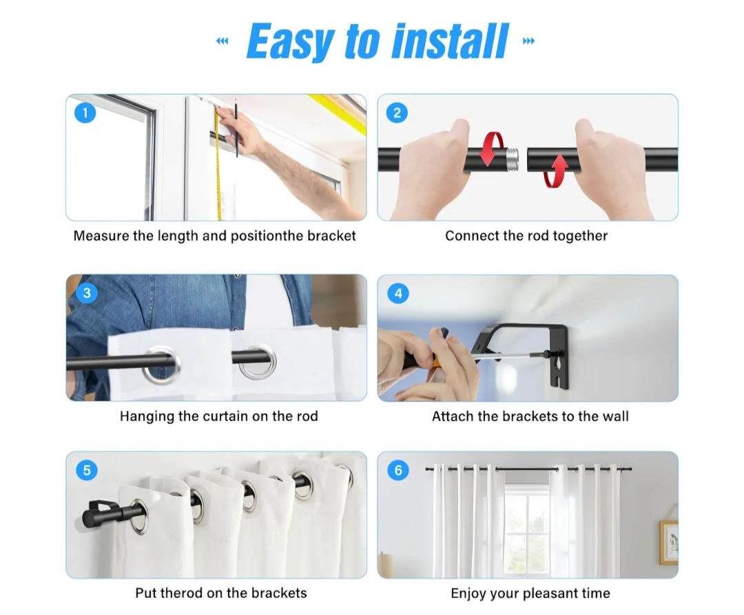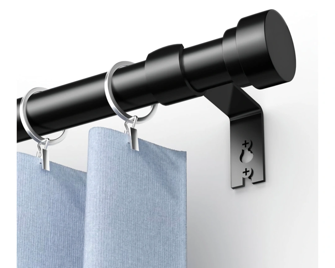 Complete heavy duty curtain rod set in black! It comes with all the necessary hardware for easy installation. 16-120'', Cylindrical End Cap, 1" Diameter.