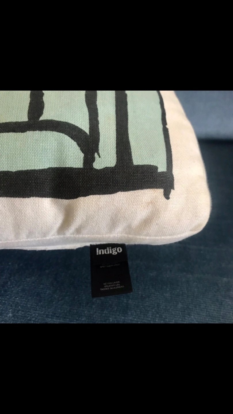 An adorable cushion with a Cat drawing! The Cushion is cut-out/shaped in the cat design. The stuffing is firm and intact, so the cushion is in perfect condition. There are some marks from handling (see close up pics 4, 5), which can be spot-cleaned. It’s not that noticeable once placed on a sofa or chair. 14” W x 13” H Bought at Indigo for $45. This cushion would look great on a living room couch, chair, patio/deck, or on the bed! ————————— ✨FREE: Super cute Cat Earrings!