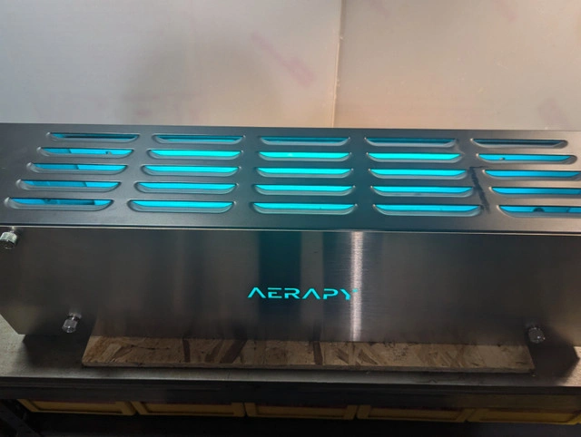 AERAPY UV AIR DESINFECTION LIGHT UNIT PSF-24 UV Air Disinfection Fixture - Destroys Airborne Bacteria & Viruses UV light kills or inactivates microorganisms by disrupting their DNA and destroying cellular function causing microorganisms to die or becoming helpless preventing the spread of certain infectious viruses. 24"W x 5.375"D x 7"H 12 POUNDS - WALL MOUNTED 120v - 1.5a Condition: Used - Like new