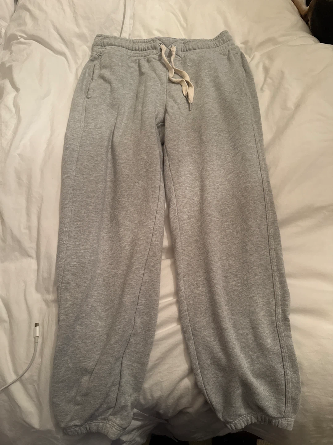 Selling a pair of light grey sweats. They have not been worn but the tag is cut off. Got them for $48, really comfy and perfect for lounge.