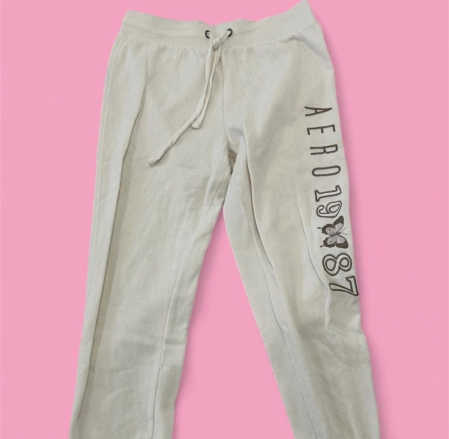 Comfy AERO sweatpants with a cute butterfly design and the year '1987'! Size M/M. Perfect for lounging or casual wear