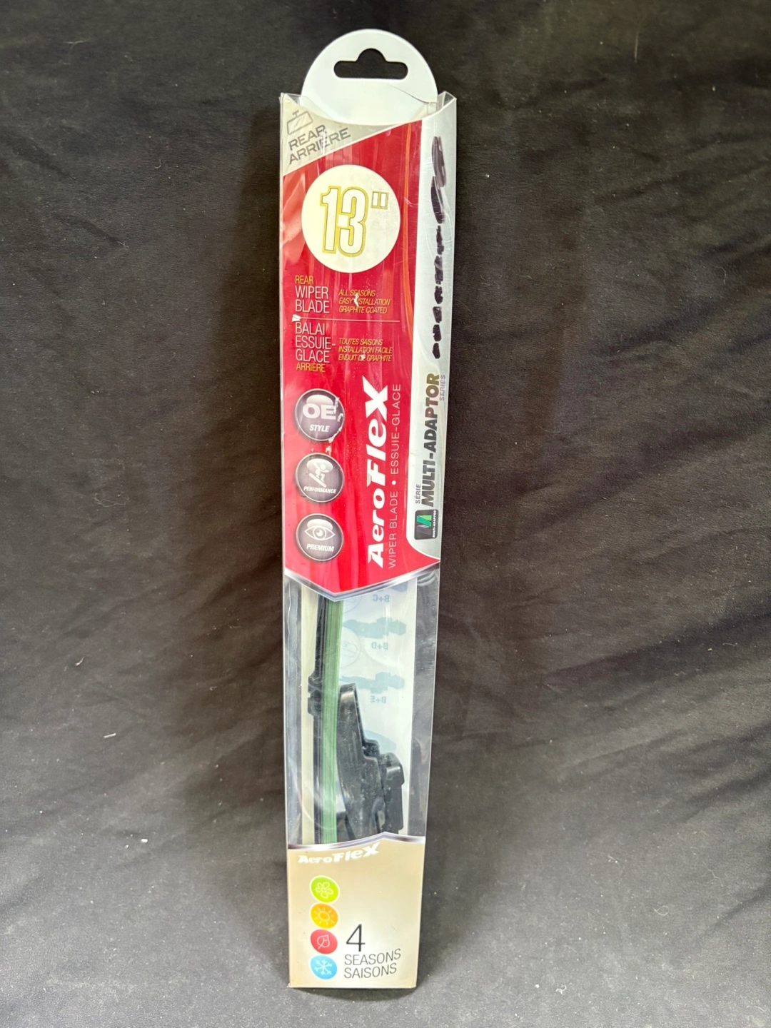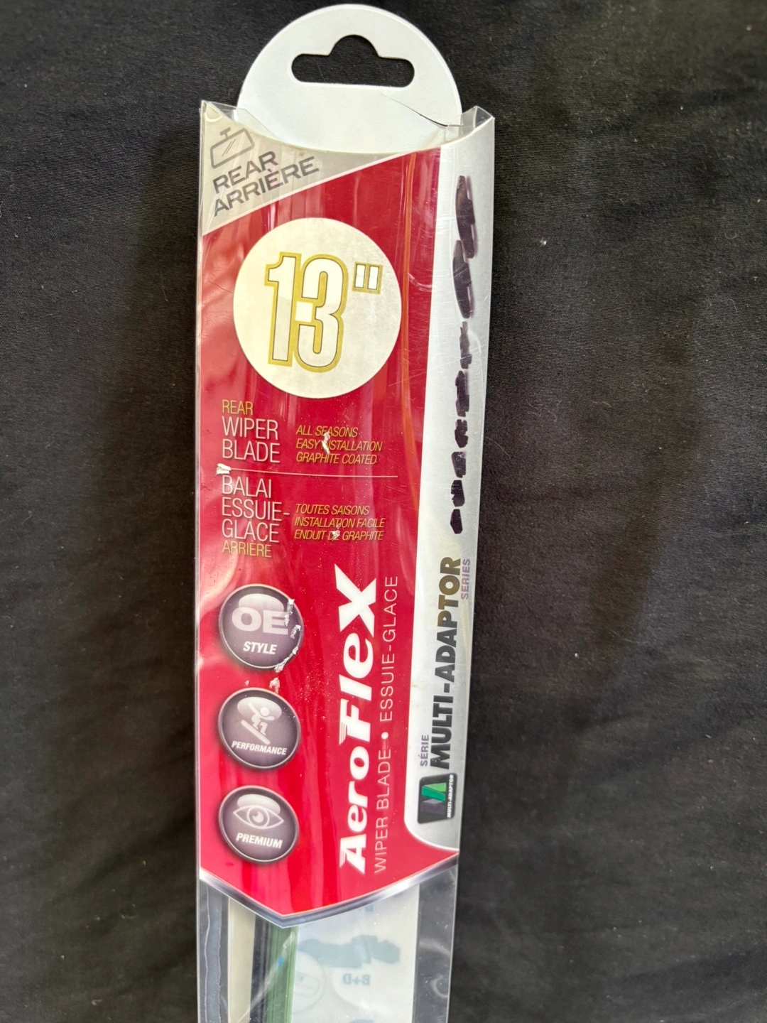 New in package. 13-inch rear wiper blade. All-seasons. Easy installation. Graphite coated. Multi-adaptor included. $1 Pick up Victoria Park and O’Connor area