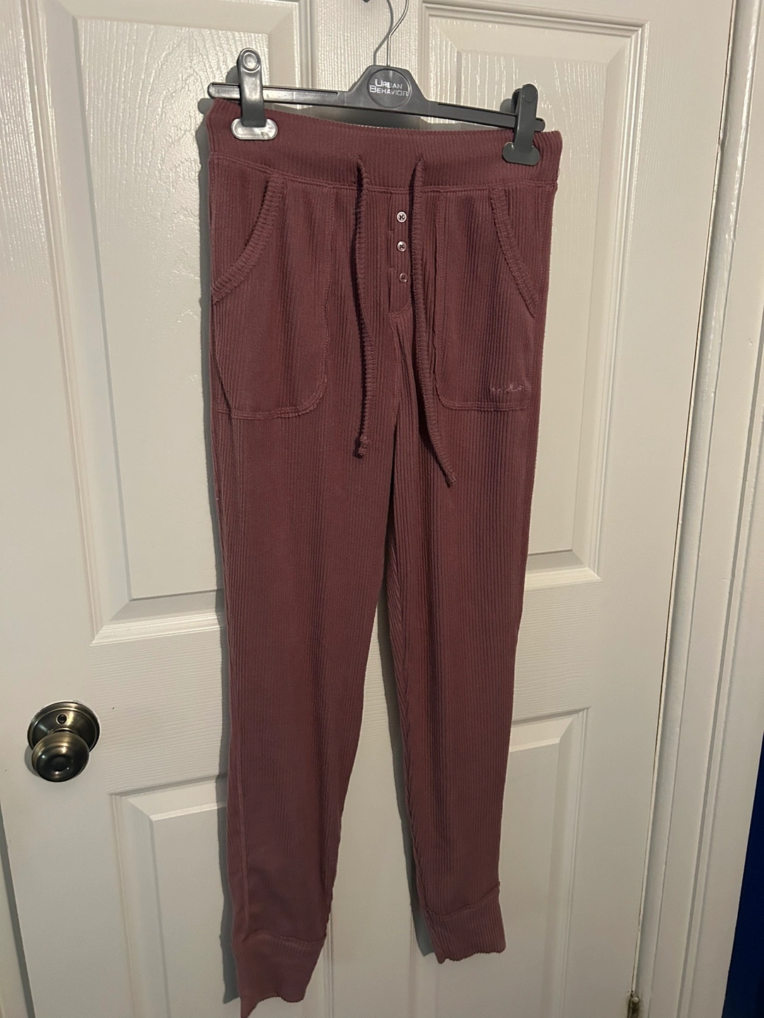 These pants are a dark pink colour with a corduroy texture. They have a drawstring waistband and two pockets. They are a casual and comfortable pair of pants. Size M brand new with tags. Paid 24.99 plus tax Pick up Main Street and 16th Markham