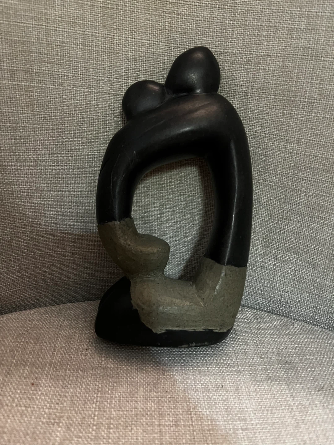 Selling a unique abstract stone sculpture. It appears to depict a parent and child. It's approximately 7 inches tall.