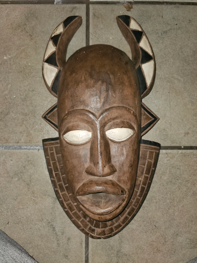Unique African tribal mask, perfect for adding a touch of cultural art to your home! This wooden mask features intricate carvings and a distinctive design. A great statement piece for any room!
