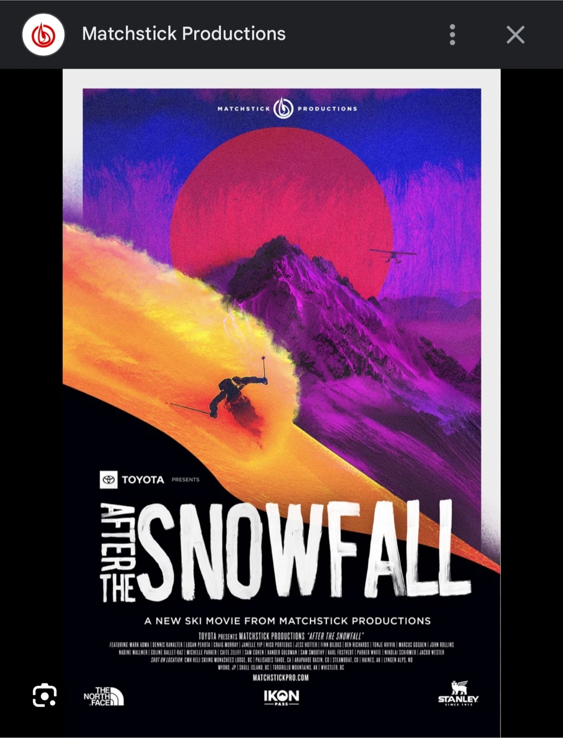🎿 2 VIP Tickets for “After the Snowfall” – Matchstick Productions 📍 Centennial Theatre, North Vancouver 🗓️ Thursday, October 16th, 2025 – 7:30 PM 🎟️ Selling for $95 total (face value $48.50 each, tax included) Unfortunately, I double-booked that night, so my loss could be your epic ski-stoke gain! These are VIP tickets, which include: ✅ Premium seating ✅ A gift bag with items from Stanley, The North Face, and other sponsors ✅ Chance to meet the athletes and win gear The show is over 75% sold out, so this is a great chance to grab prime seats for an unforgettable ski film night. DM me if you’d like the pair — just looking to cover my cost, not make money.