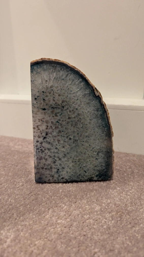 Unique agate bookend. Beautiful natural stone. Adds character to any space. Perfect for displaying books or as a decorative accent.