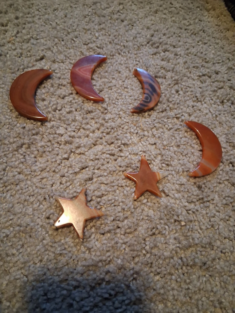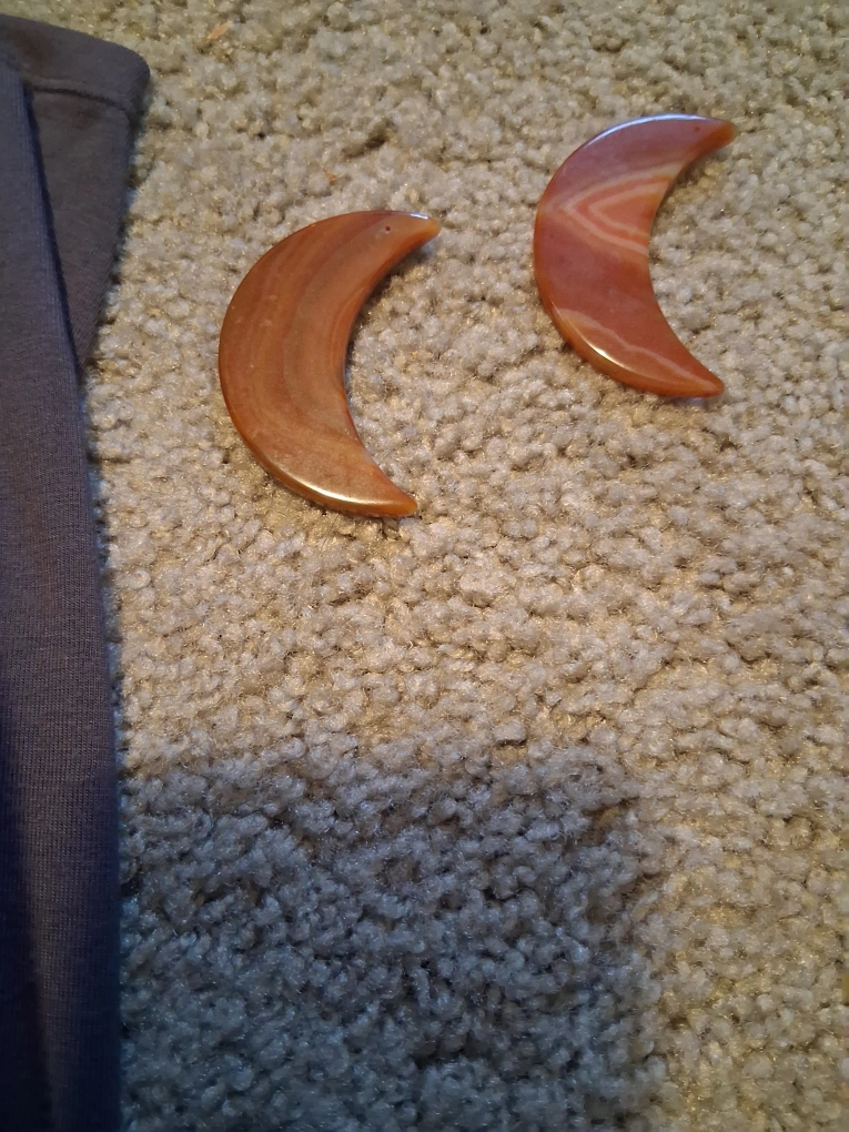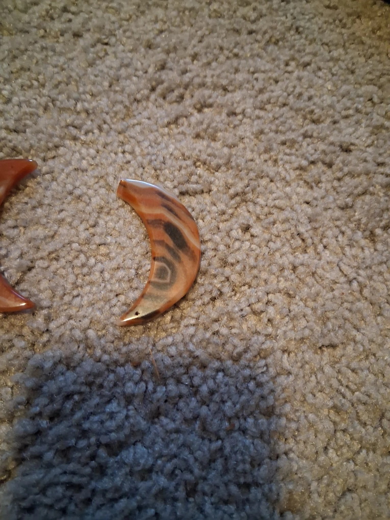 Here are some lovely agate crescent moon pendants! They have a beautiful striped pattern and would be perfect for jewelry making or as decorative pieces