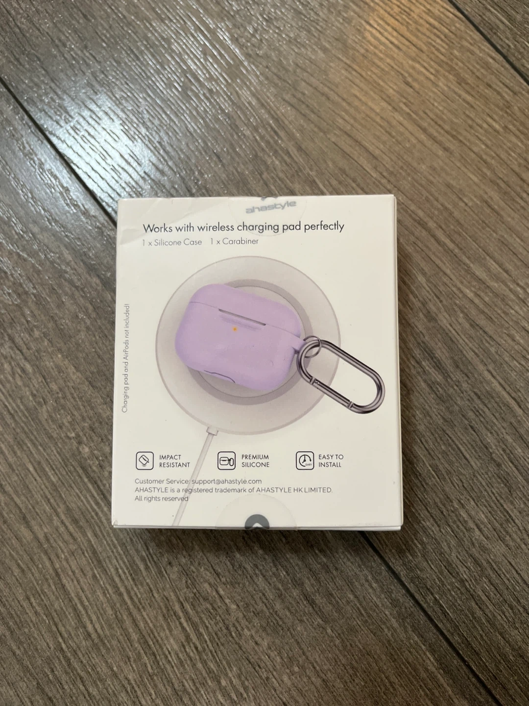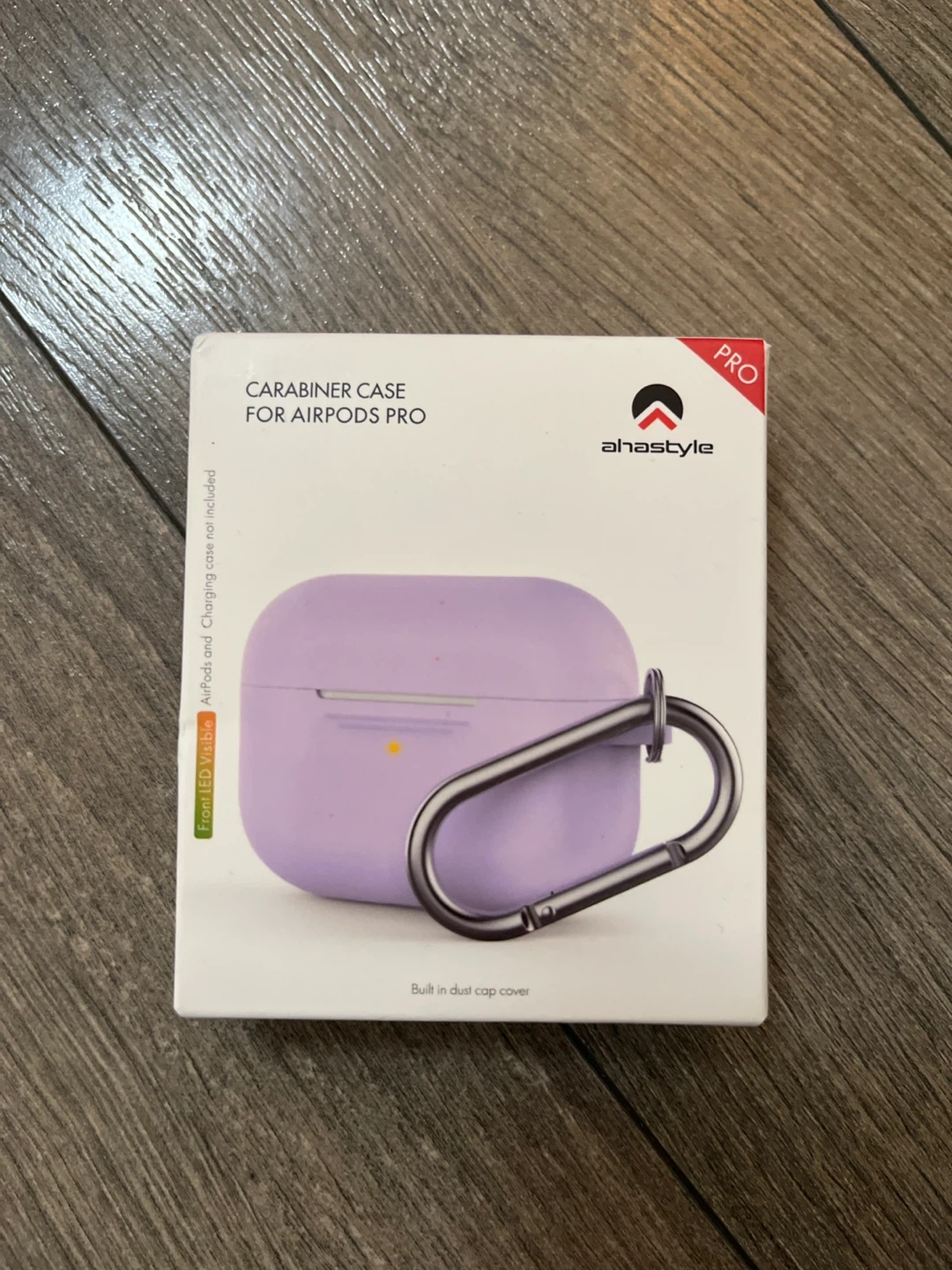 Keep your AirPods Pro safe and stylish with this AHASTYLE carabiner case! It's a lilac silicone case that works perfectly with a wireless charging pad. The case is impact resistant and easy to install. Plus, it has a built-in dust cap cover