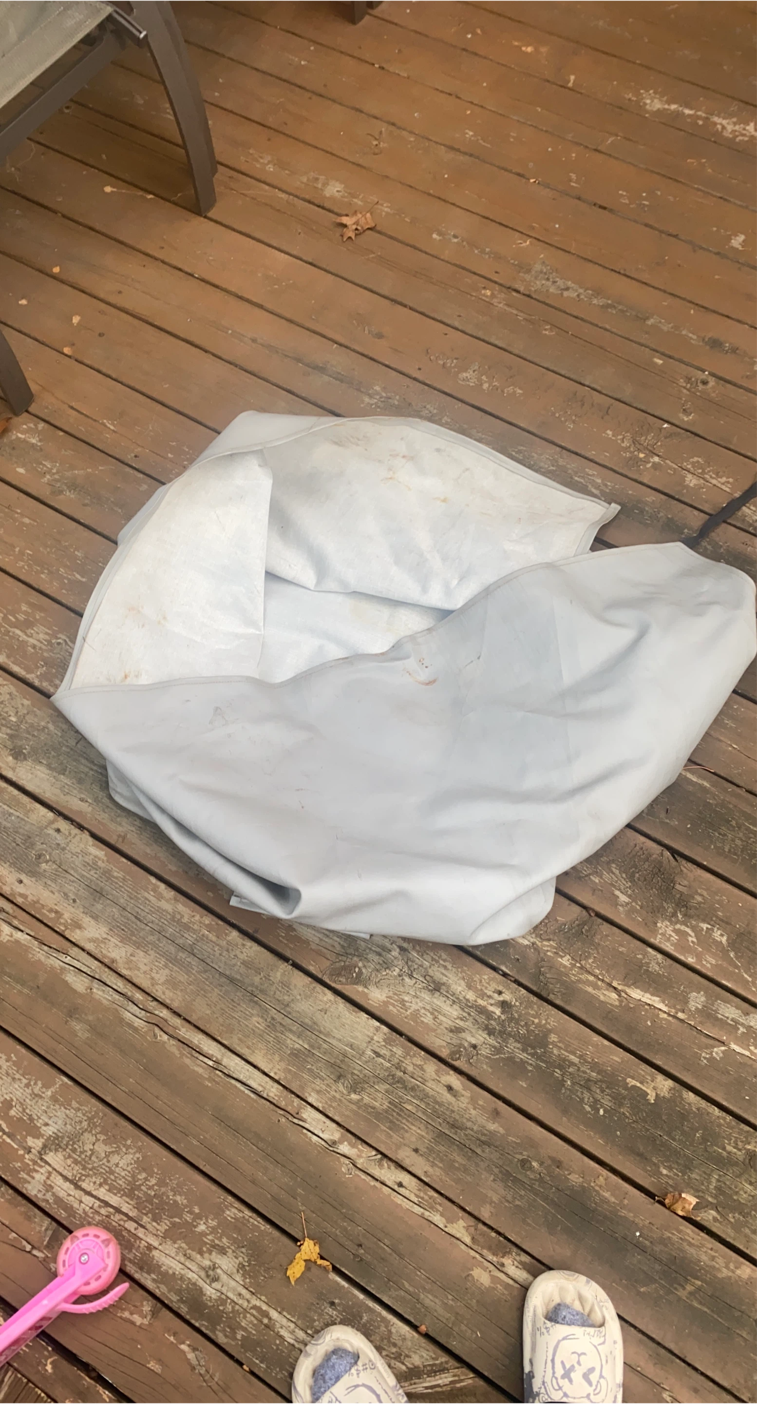 This is a light grey outdoor AC cover. It's in used condition and has some stains. Perfect for protecting you air conditioner during the winter time.