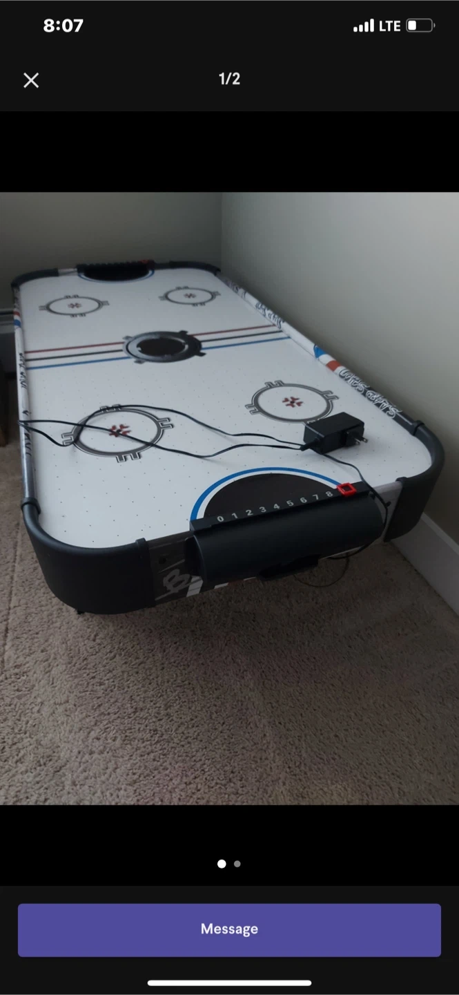 21 width x 45 length x 12 height Selling an air hockey table. It's a Breakaway Glove Save model. It's in good condition and ready for some fun games!