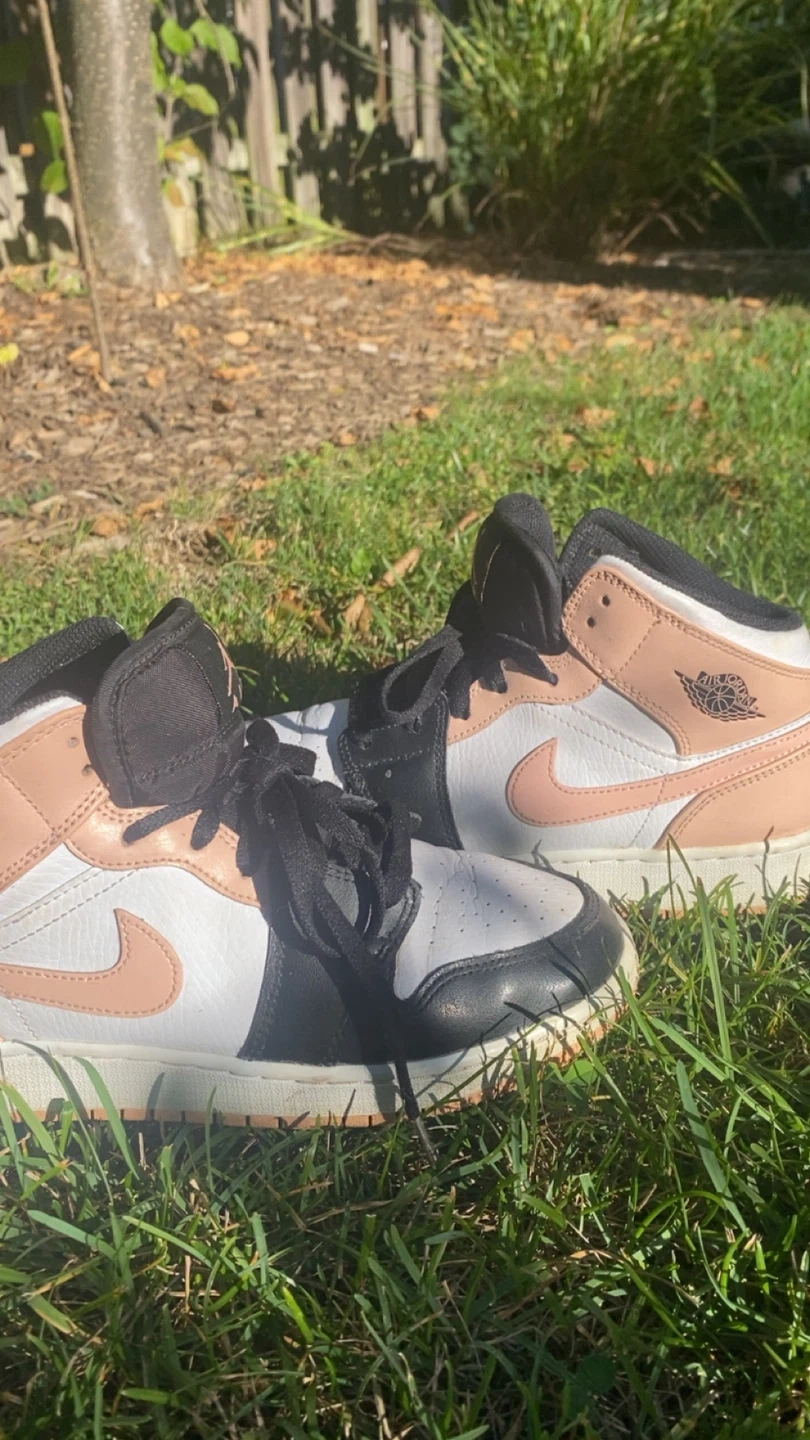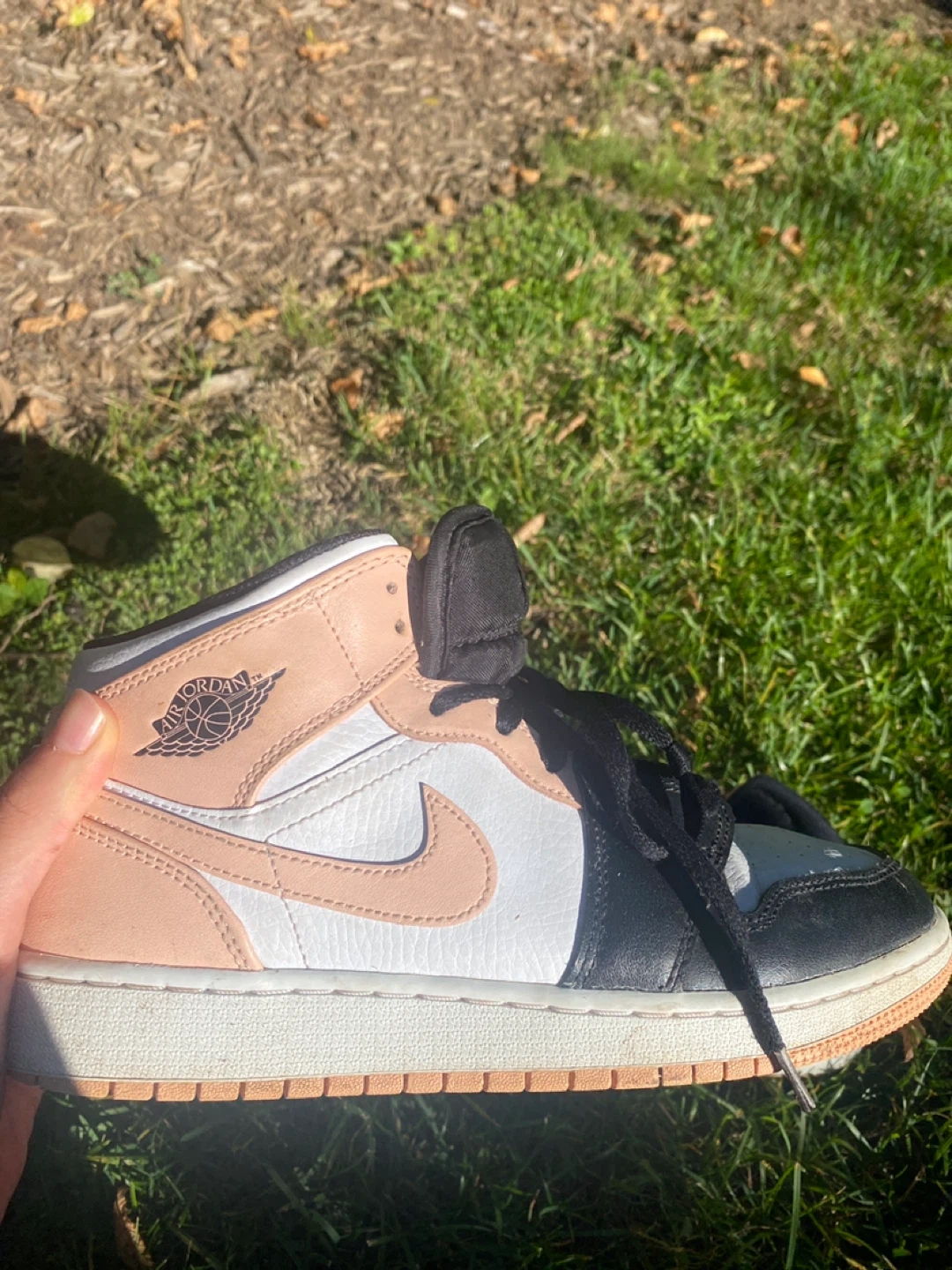 Selling a pair of Air Jordan 1 Mid SE sneakers in crimson tint. They're in great shape and ready for a new home. Size is a women's 6 US.